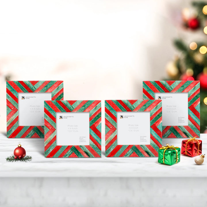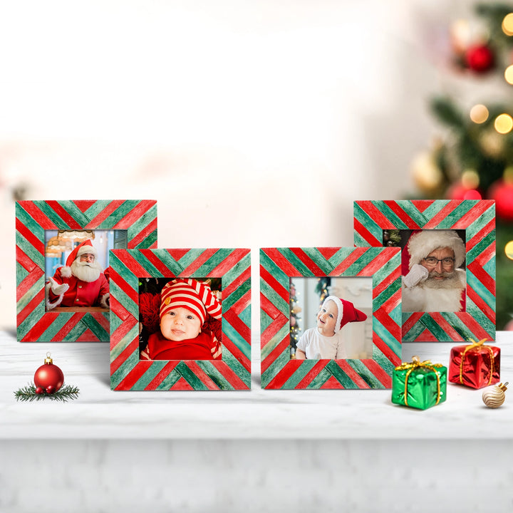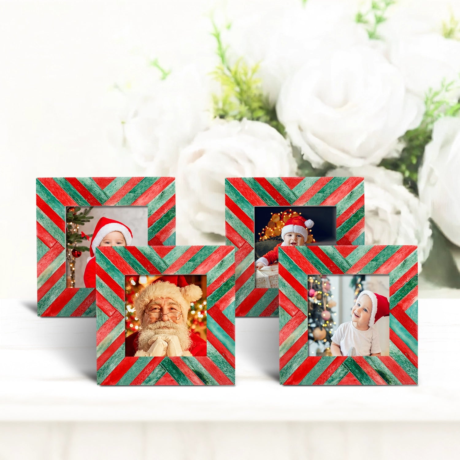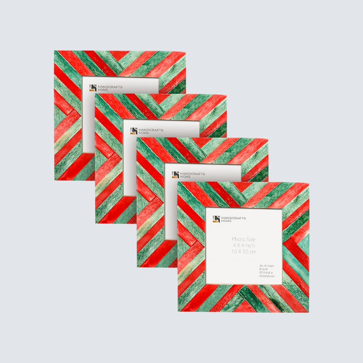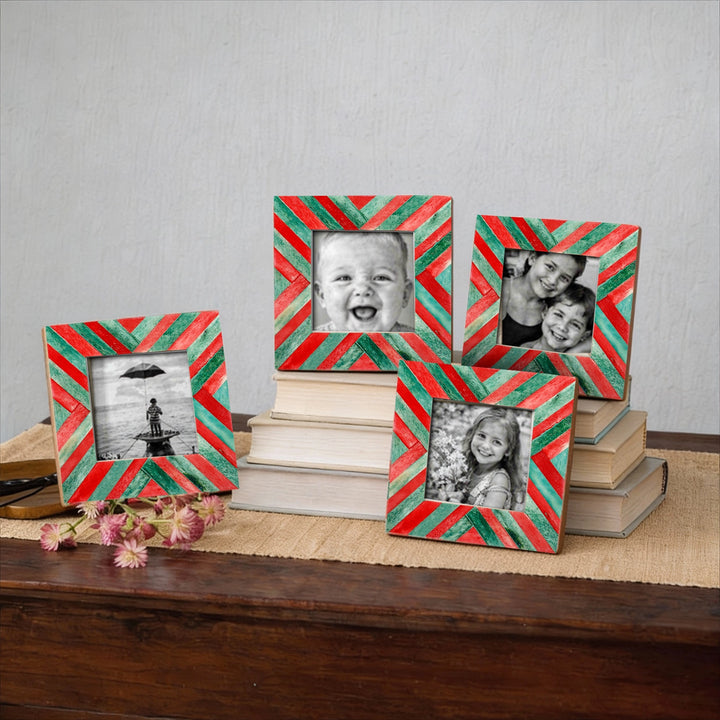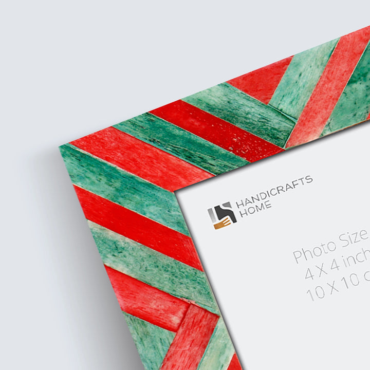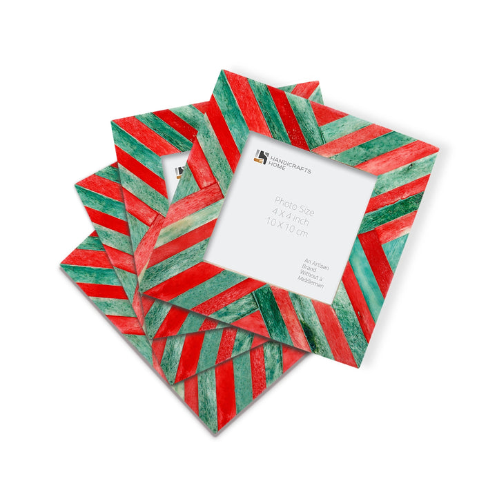 Baby Picture Frames Chevron Pattern Bone Inlay 4"x4", Green & Red