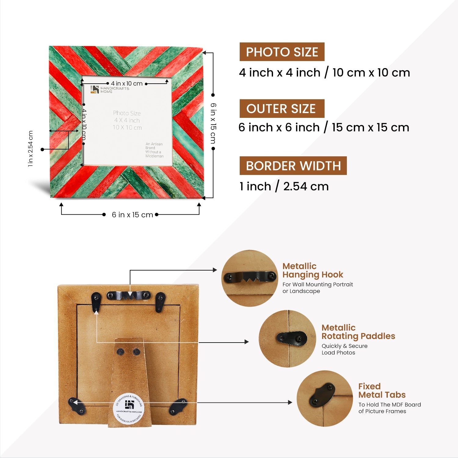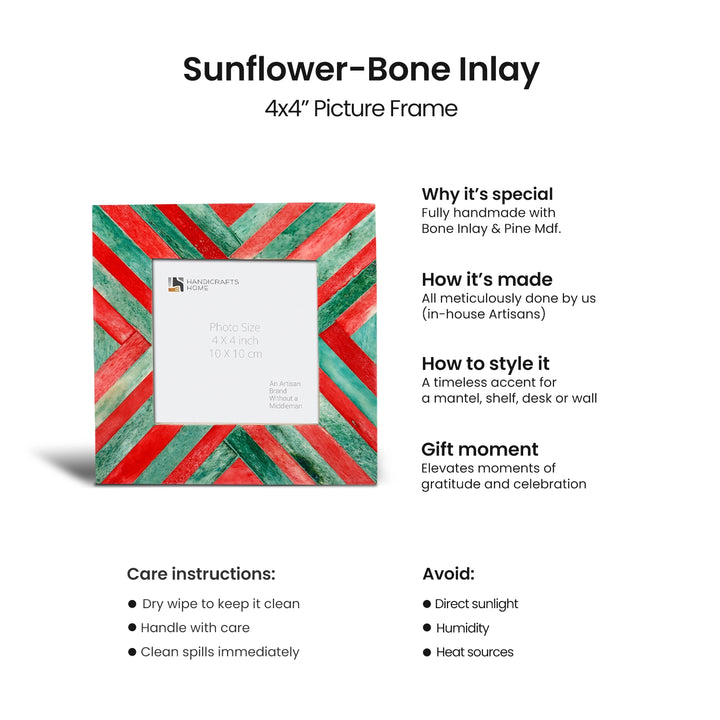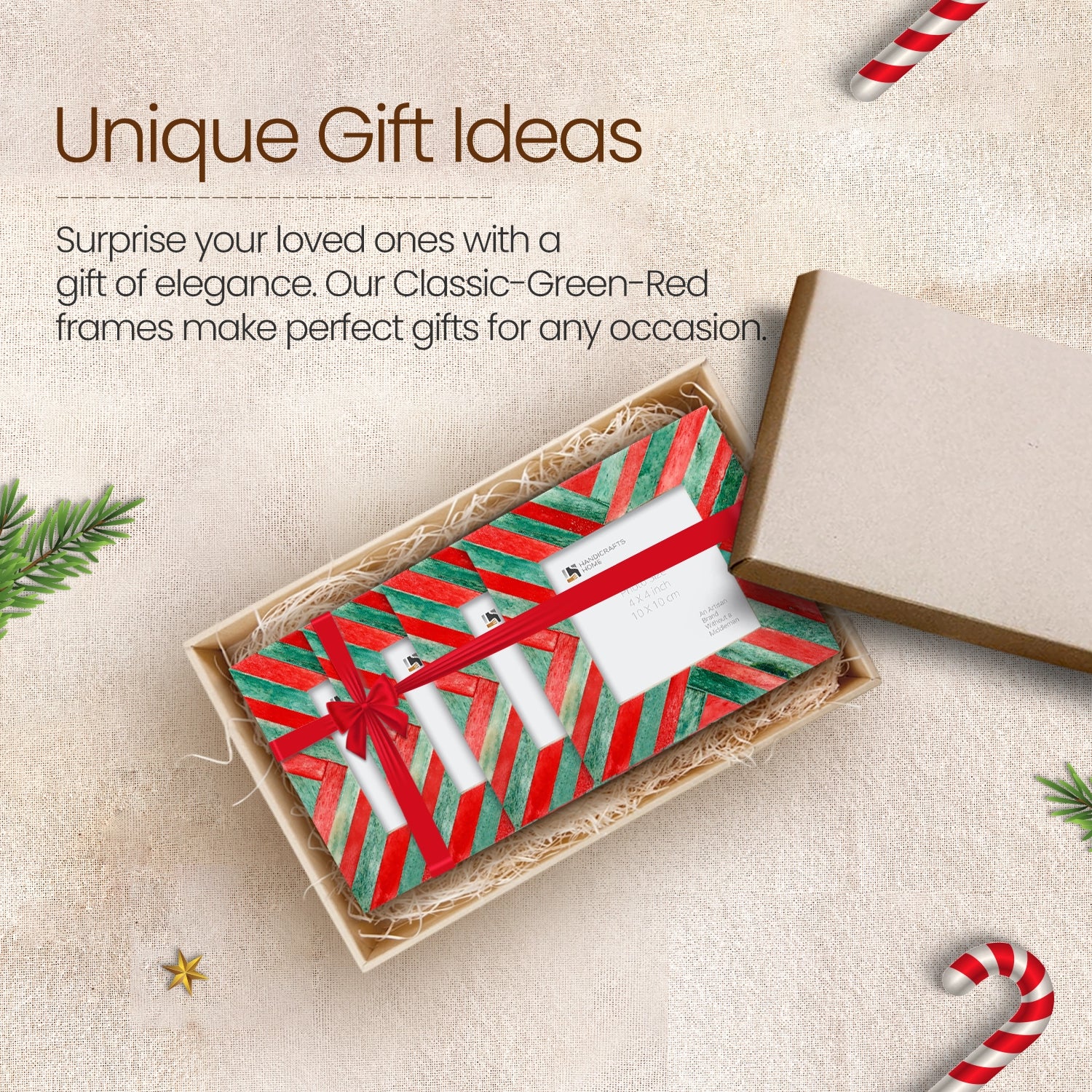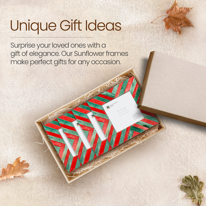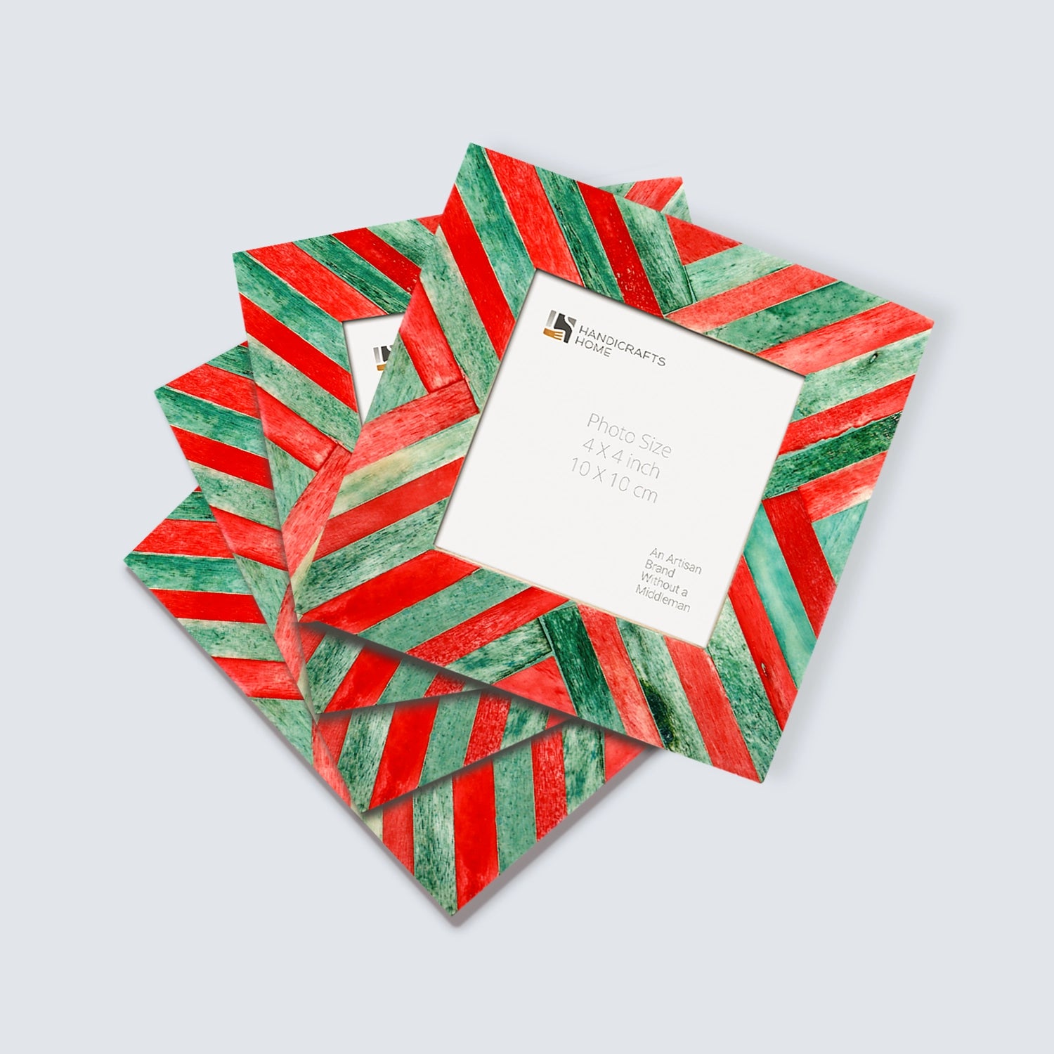 Baby Picture Frames Chevron Pattern Bone Inlay 4"x4", Green & Red