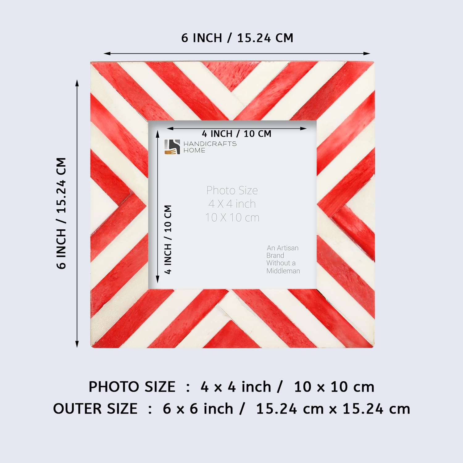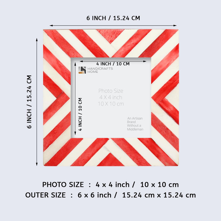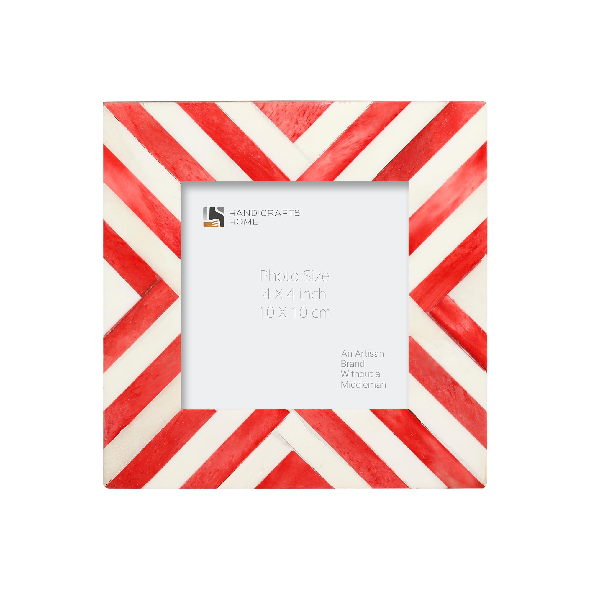 Square Baby Picture Frames Chevron Pattern Bone Inlay 4x4 Inch, Red