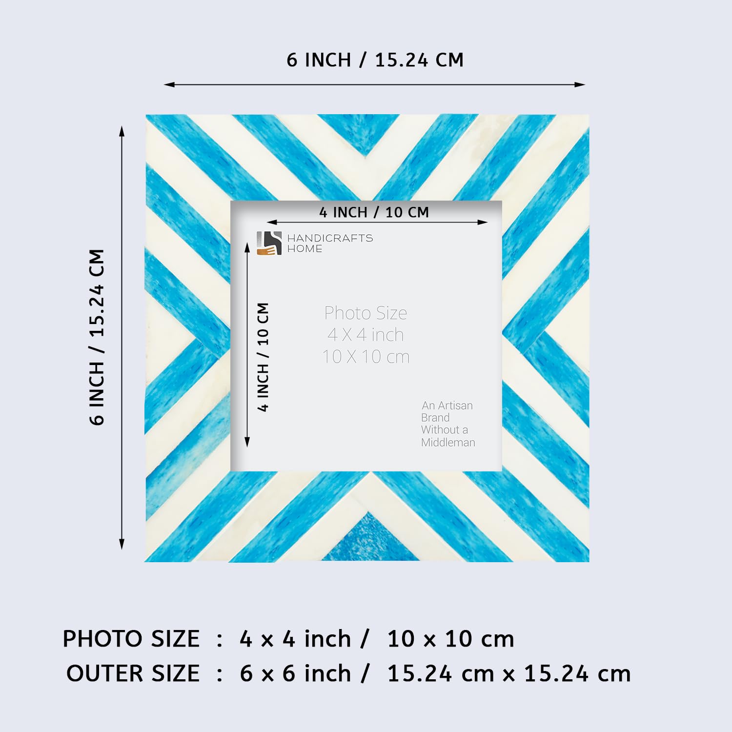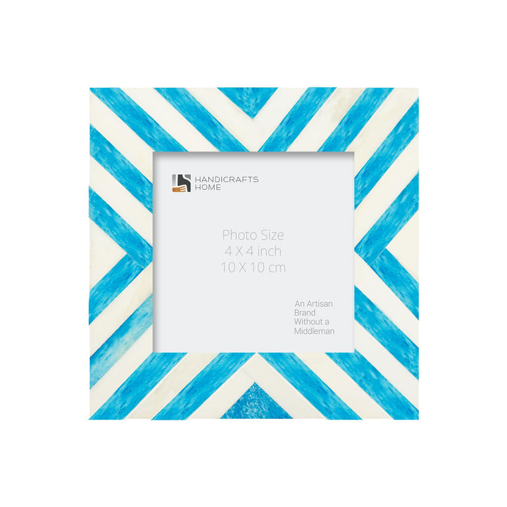 Square Baby Picture Frames Chevron Pattern Bone Inlay 4x4 Inch, Turquoise