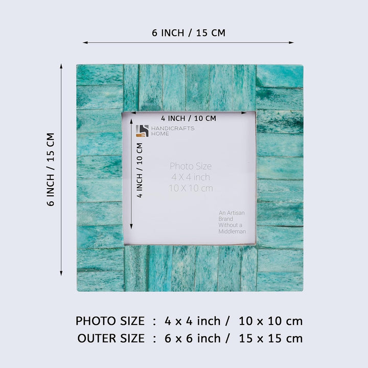 Square Baby Picture Frames Classic Pattern Bone Inlay 4x4 Inch, Green