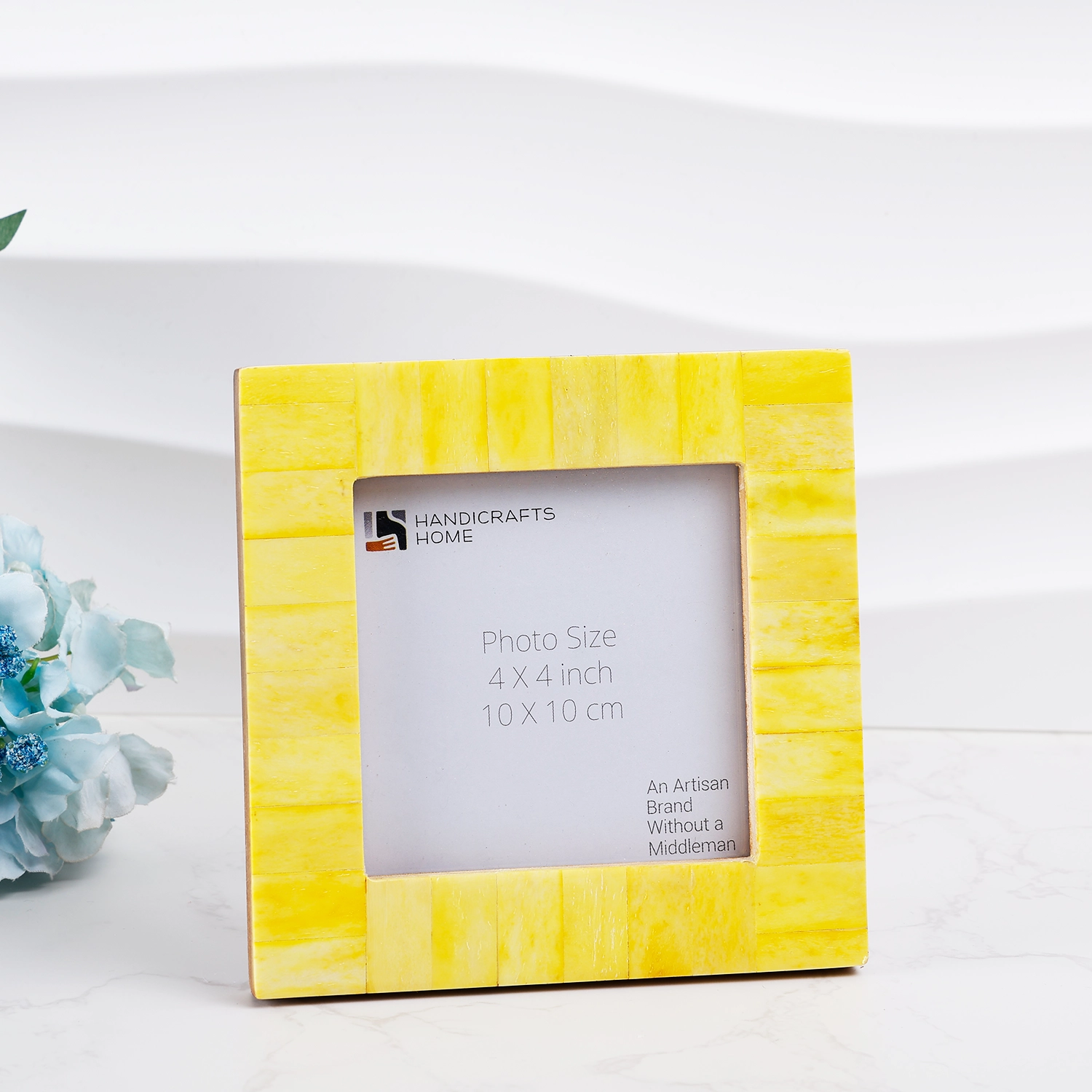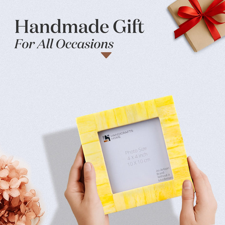 Square Baby Picture Frames Classic Pattern Bone Inlay 4x4 inch, Yellow