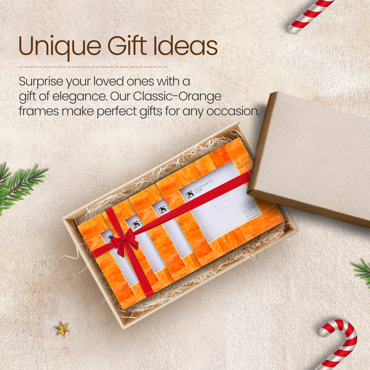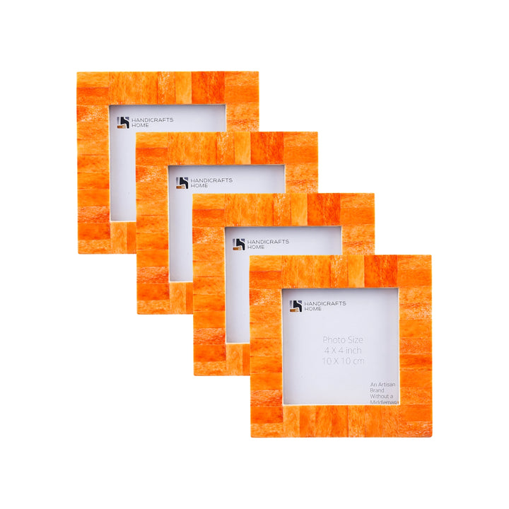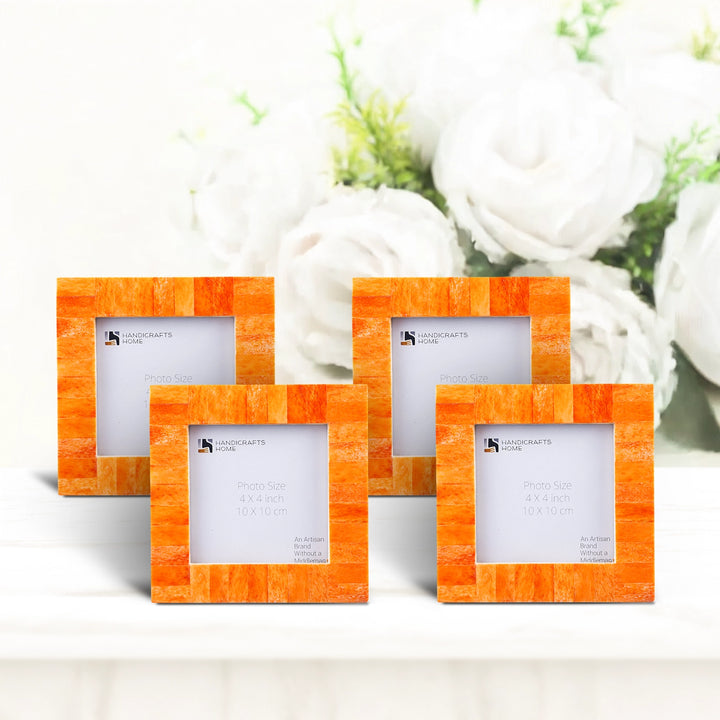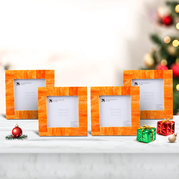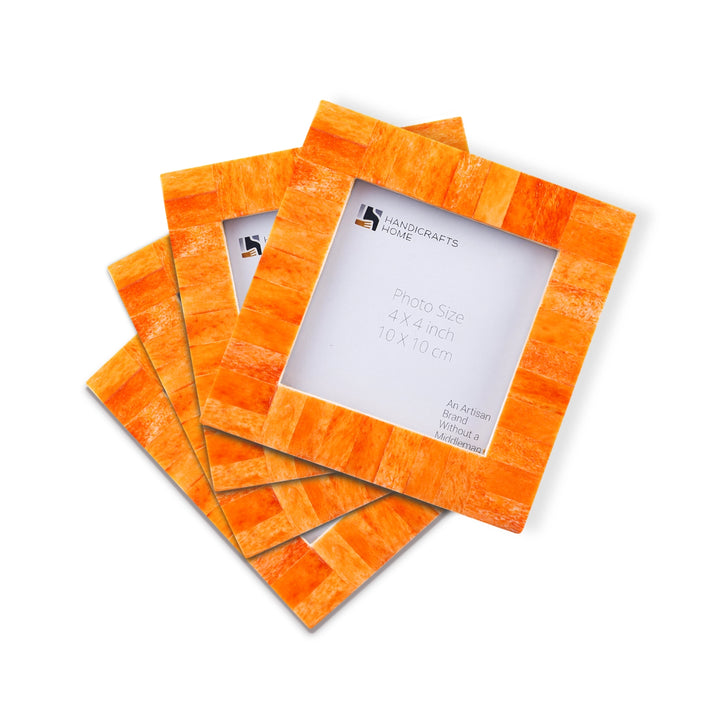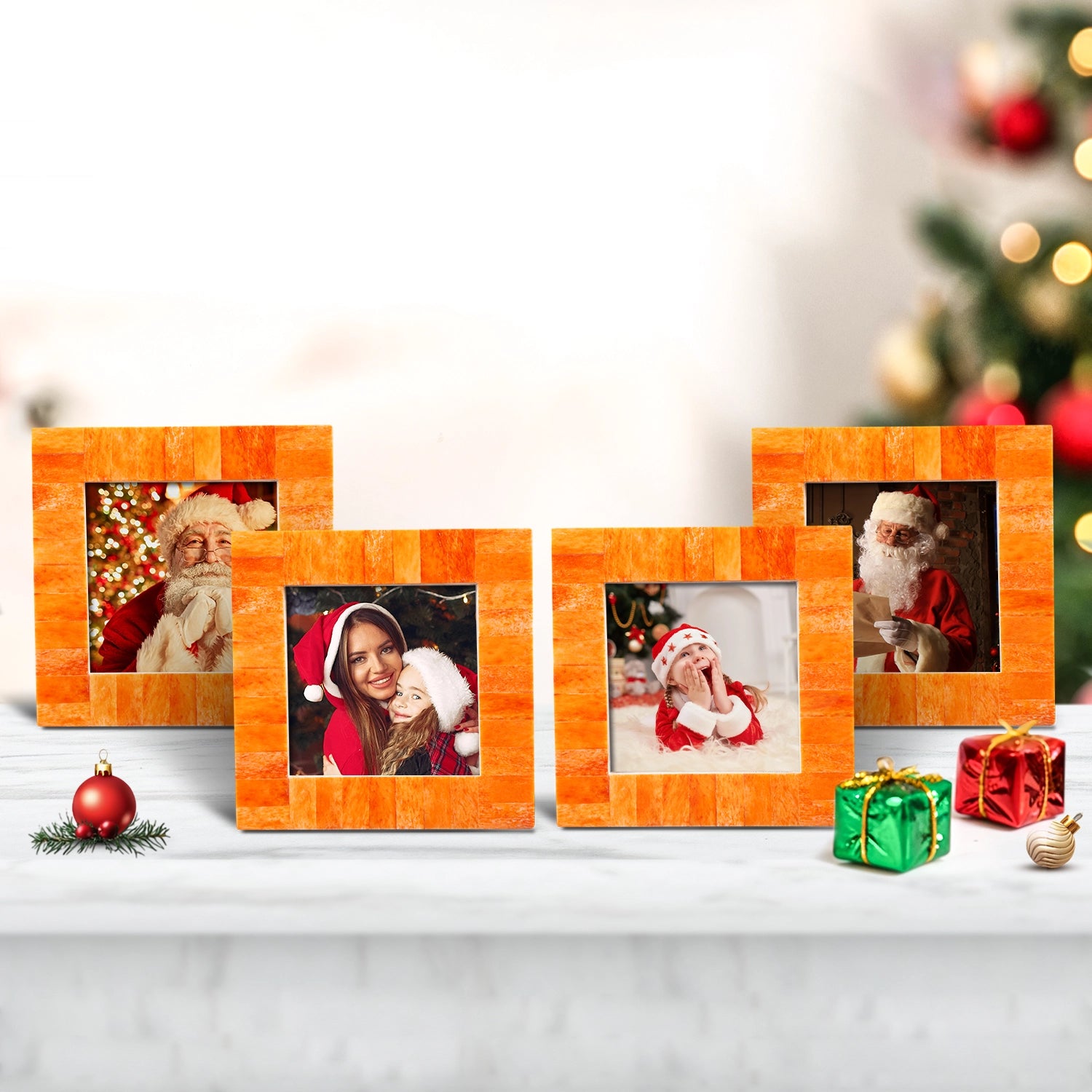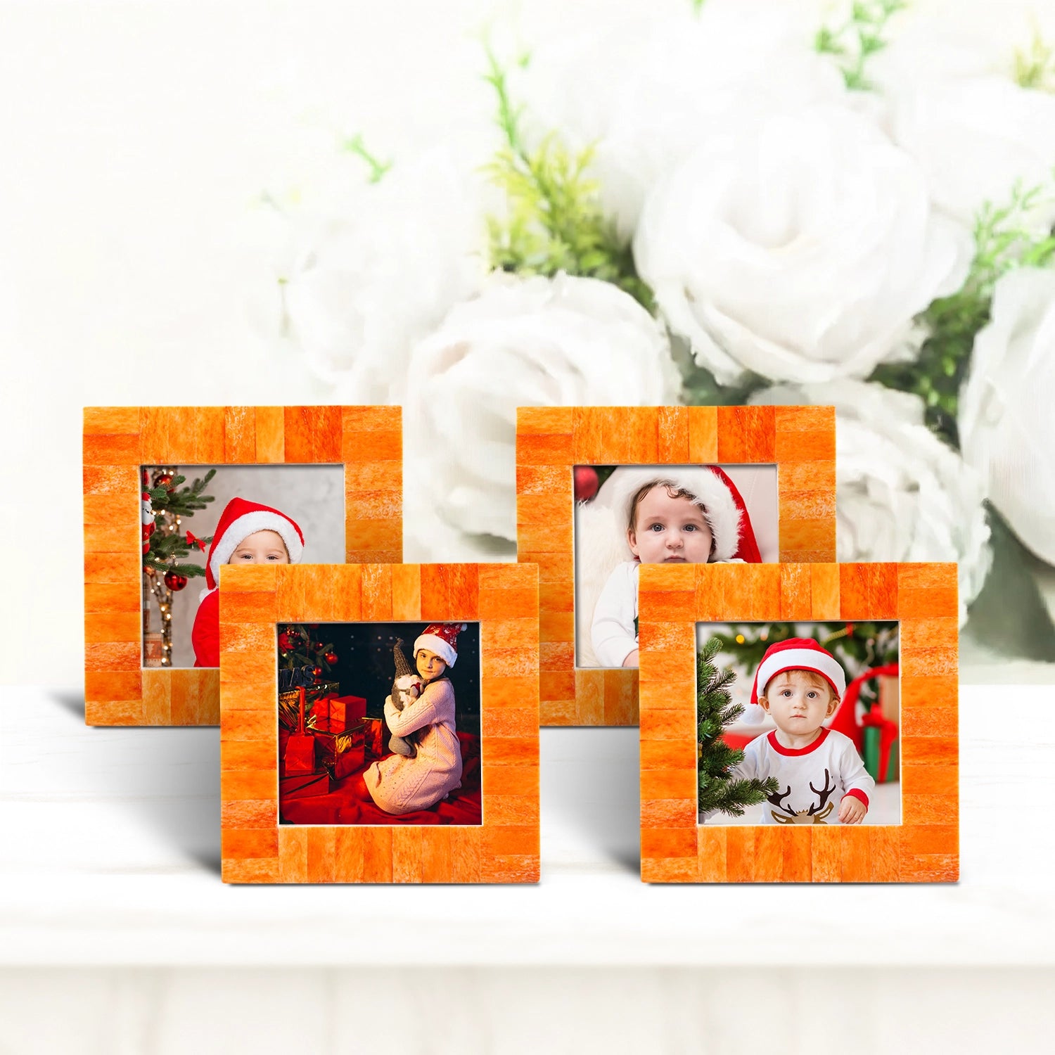 Baby Picture Frames Classic Pattern Bone Inlay Combo 4"x4", Orange