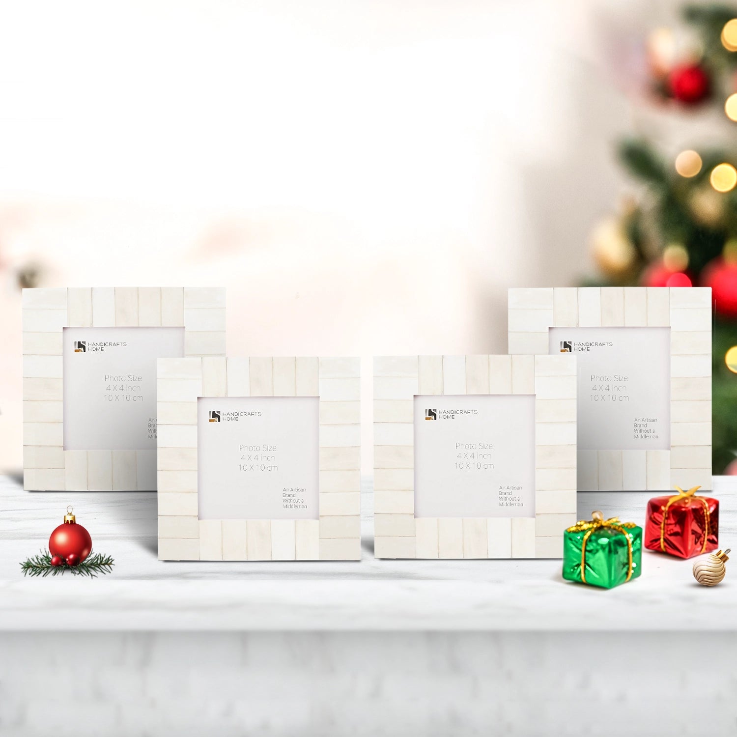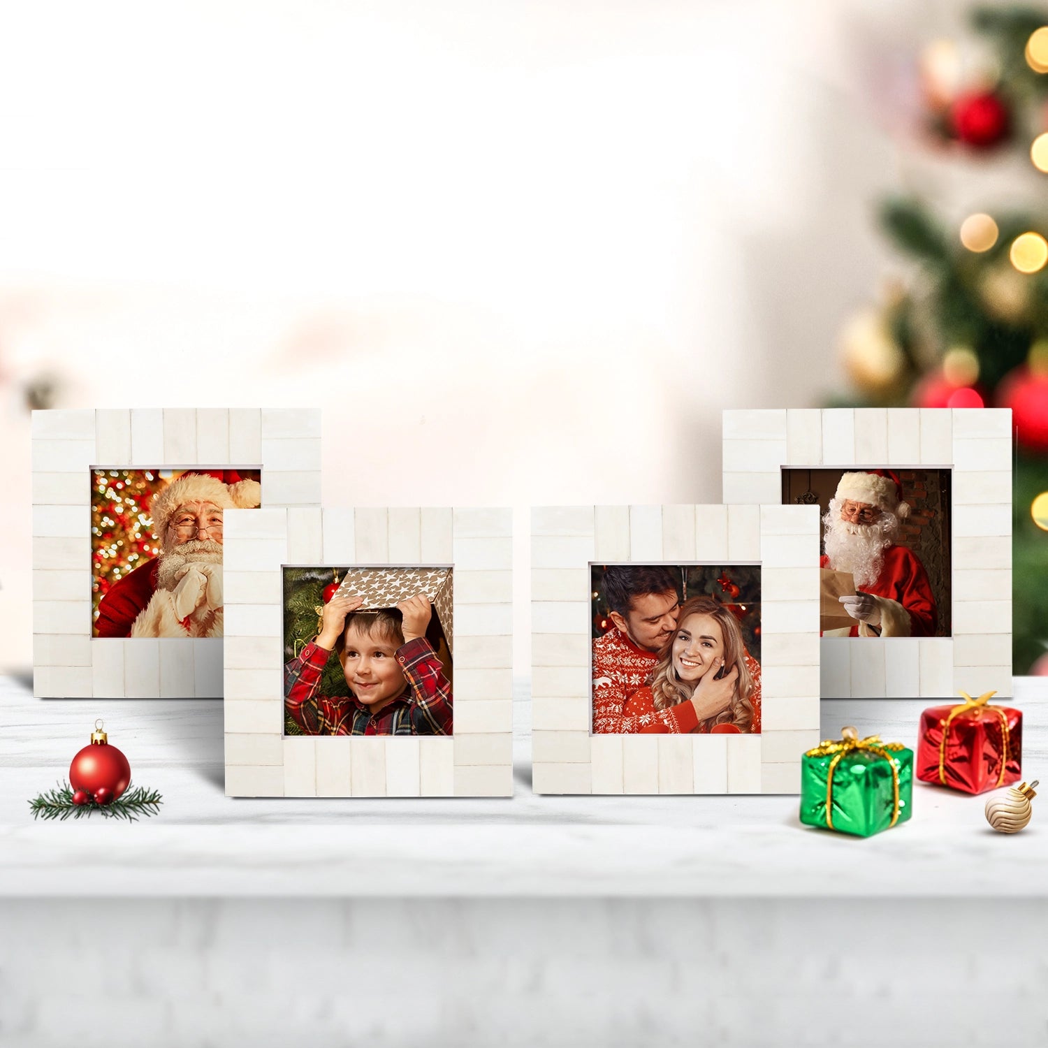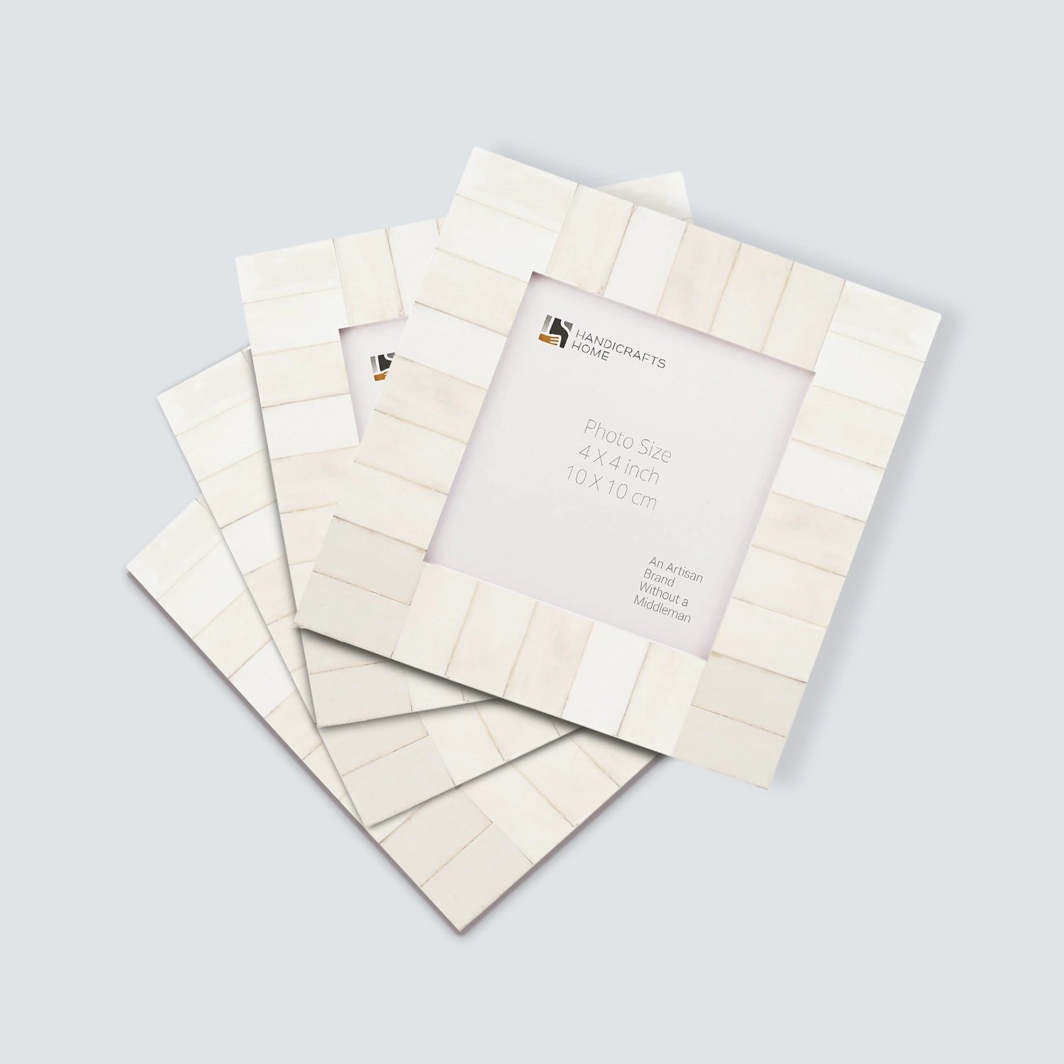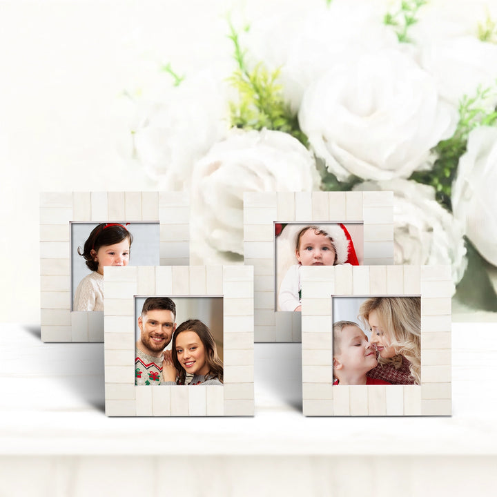 Baby Picture Frames Classic Pattern Bone Inlay Combo 4"x4", White
