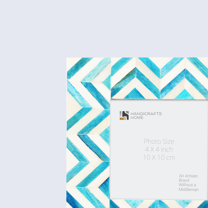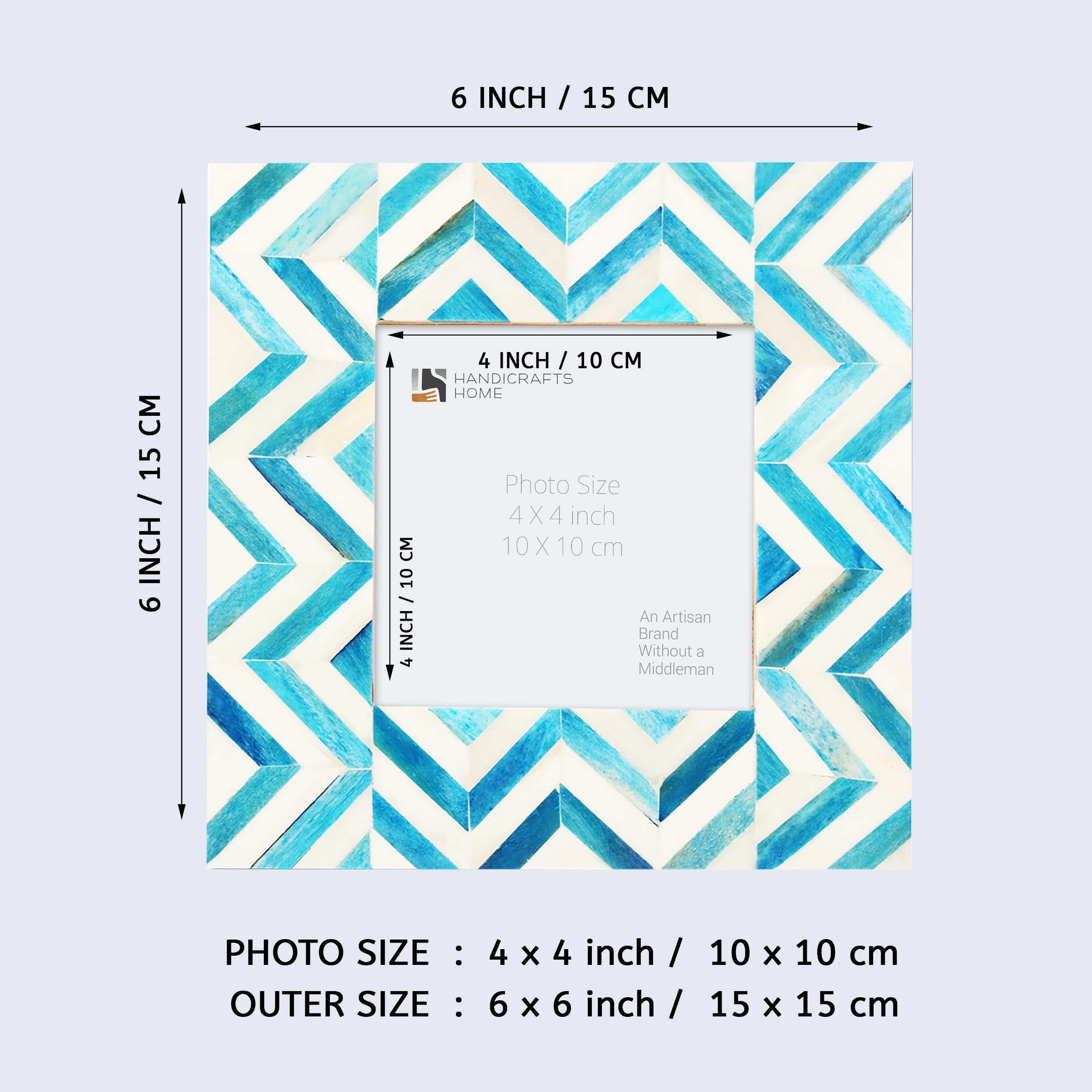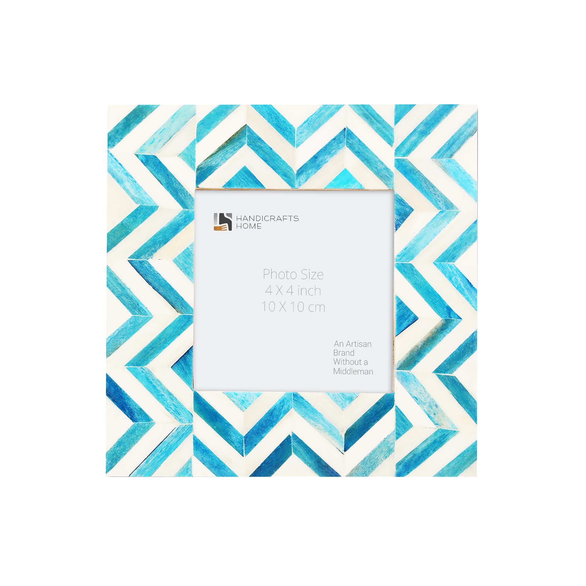 Square Baby Picture Frames Herringbone Pattern Bone Inlay 4x4 Inch, Turq