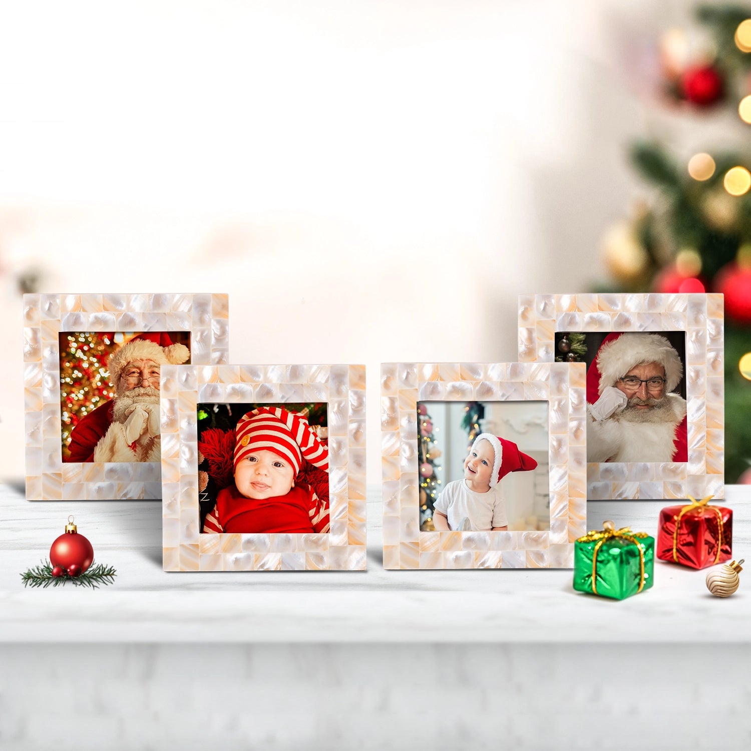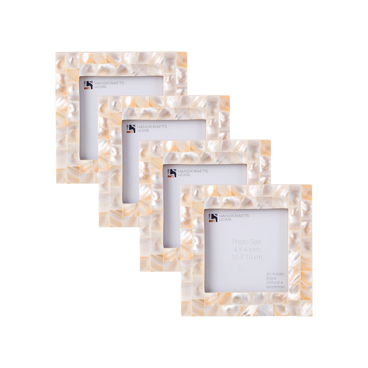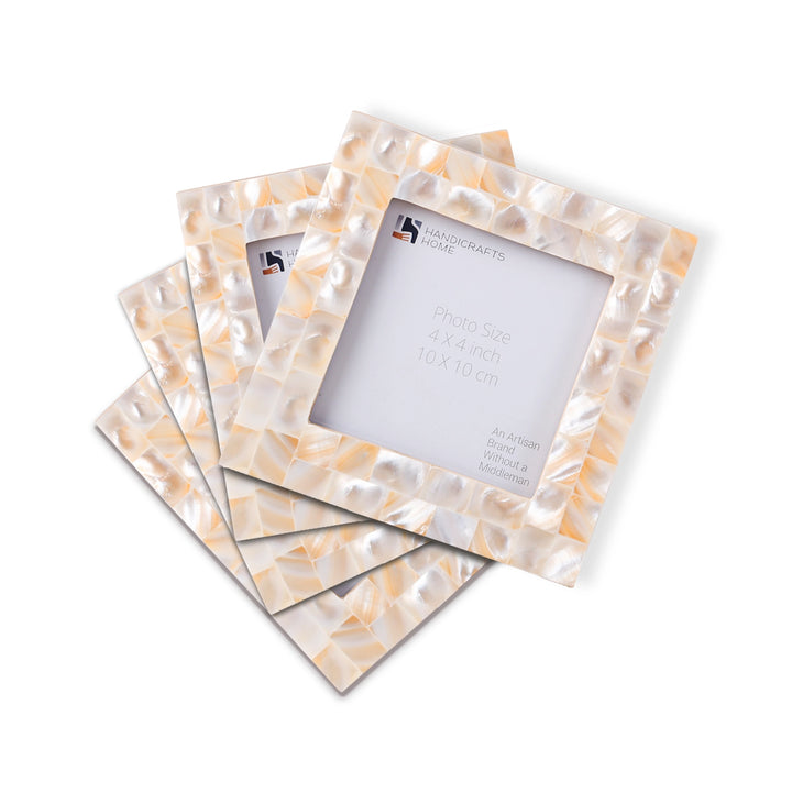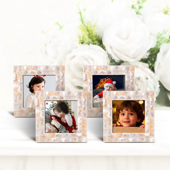 Square Baby Picture Frames Mother of Pearl 4"x4" , White