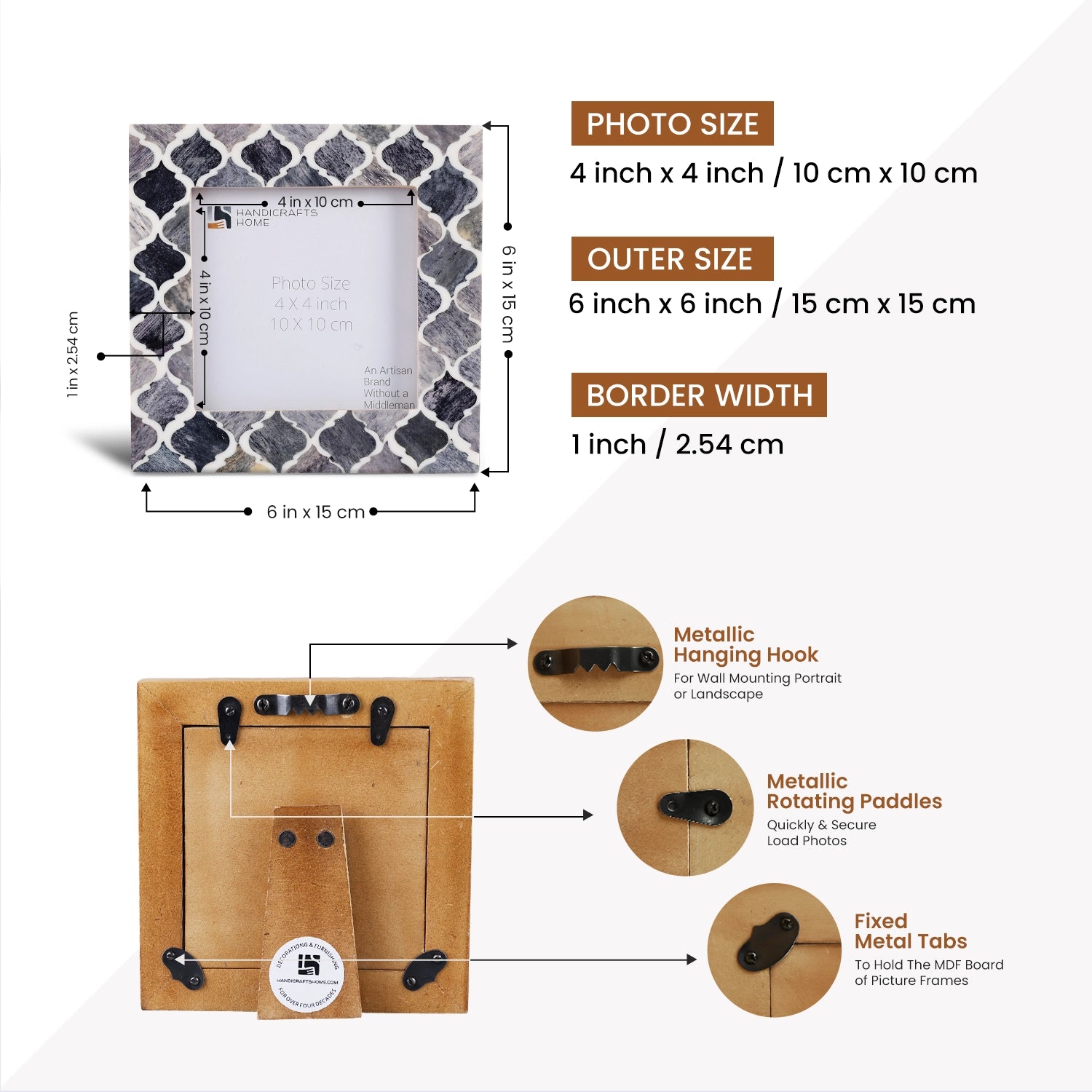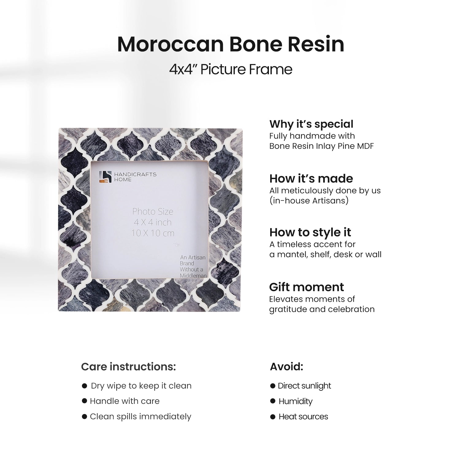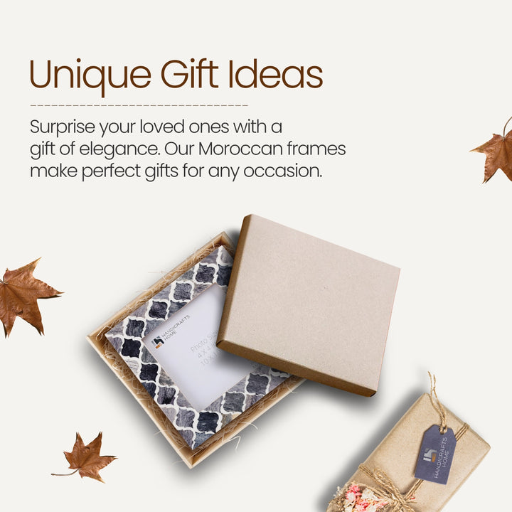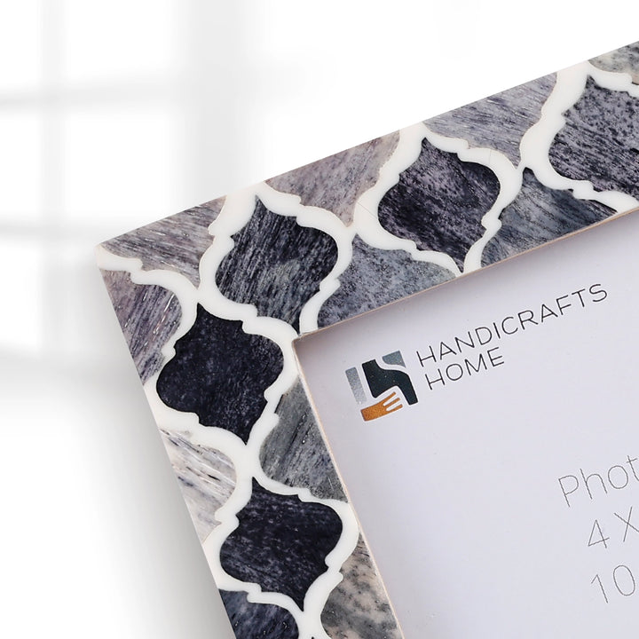 Square Baby Picture Frames Moroccan Pattern Bone & Resin Inlay 4x4 Inch, Grey