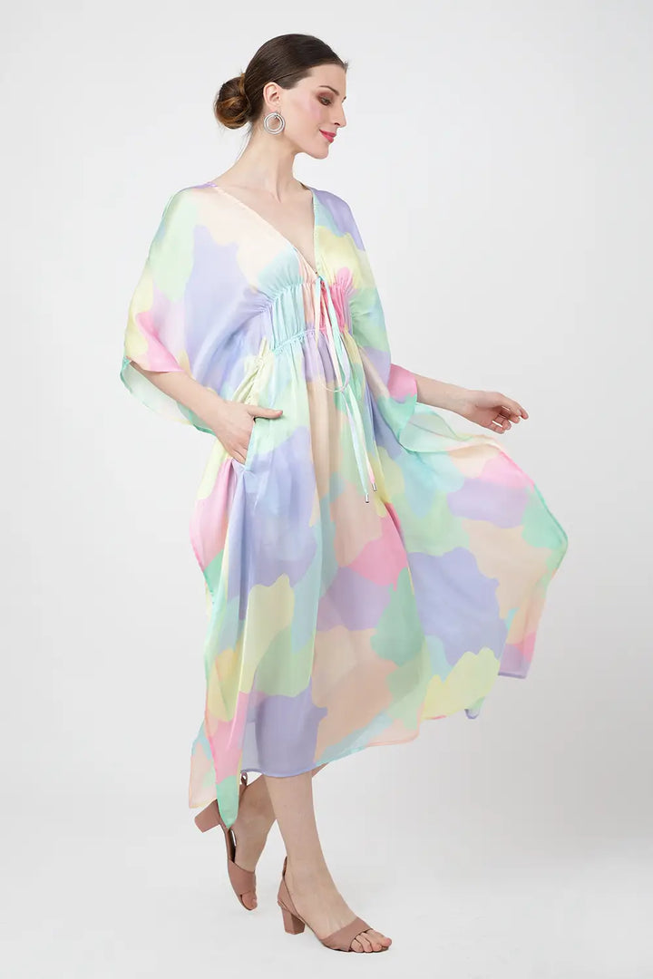 Women Midi Kaftans Summer Holiday Caftan Dress Abstract S-3XL