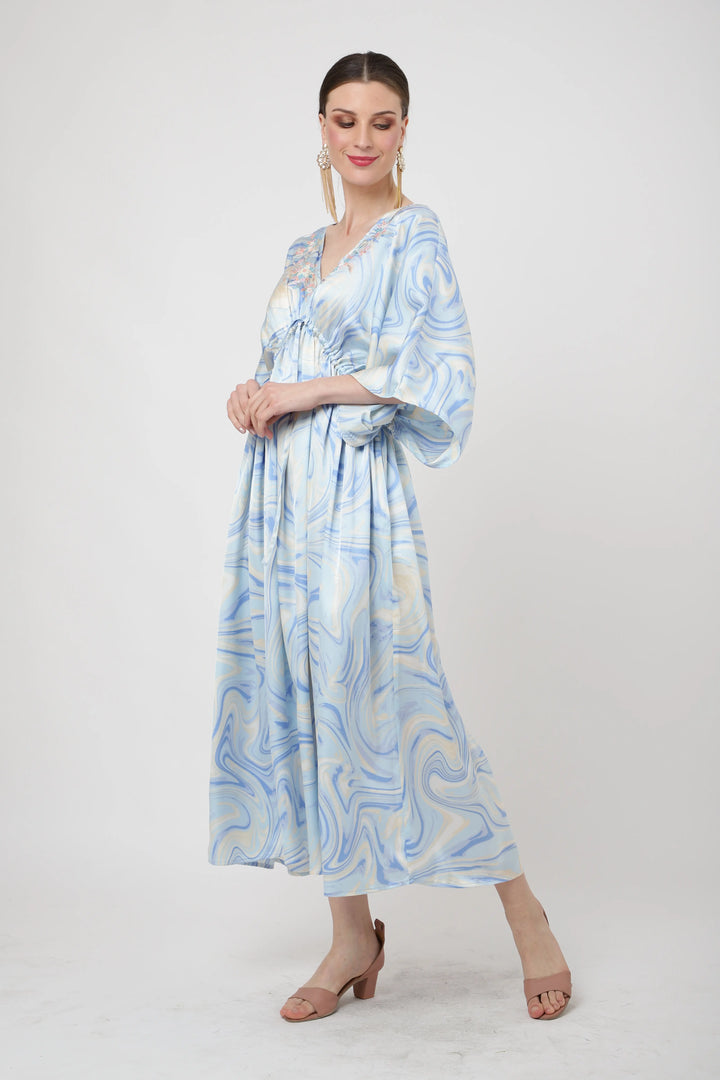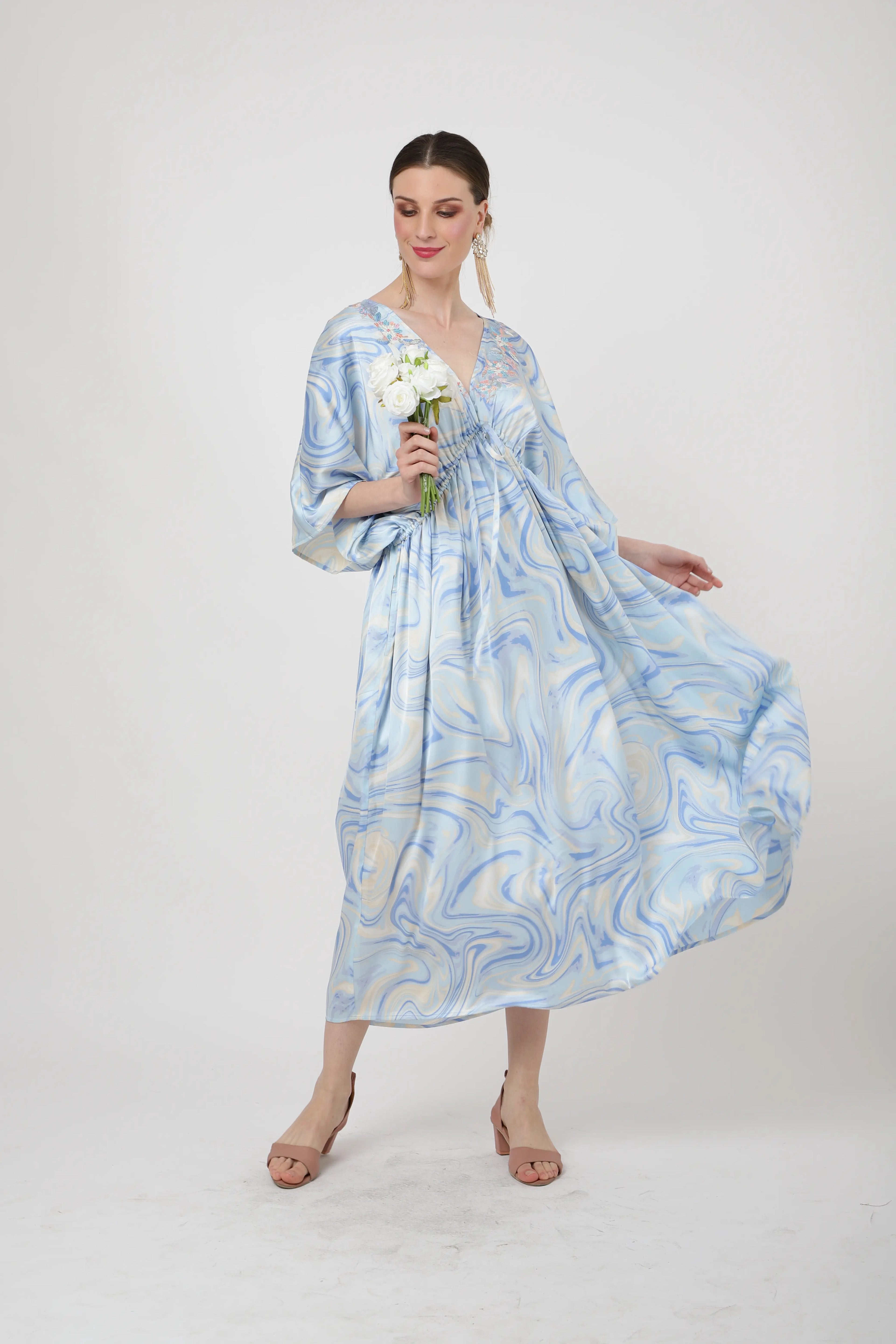 Women Midi Kaftans Summer Holiday Caftan Dress Soft Blue S-3XL