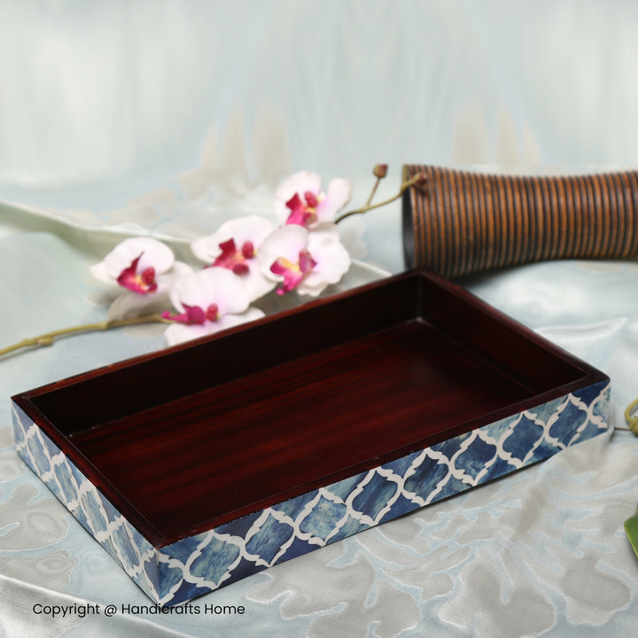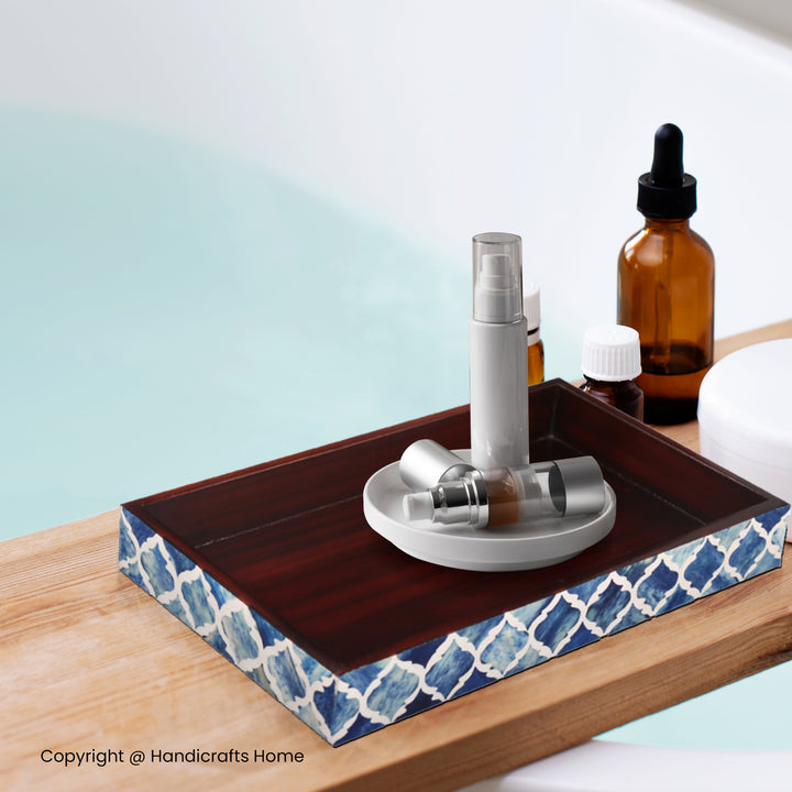 Vanity Trays Moroccan Pattern Bone & Resin Inlay Collection in 10x6, Blue & White