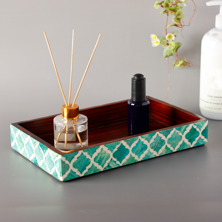 Vanity Trays Moroccan Pattern Bone & Resin Inlay Collection in 10x6, Green & White