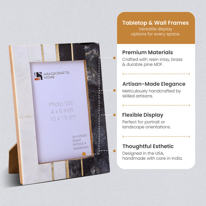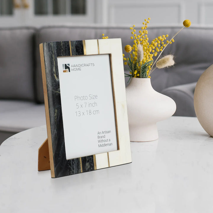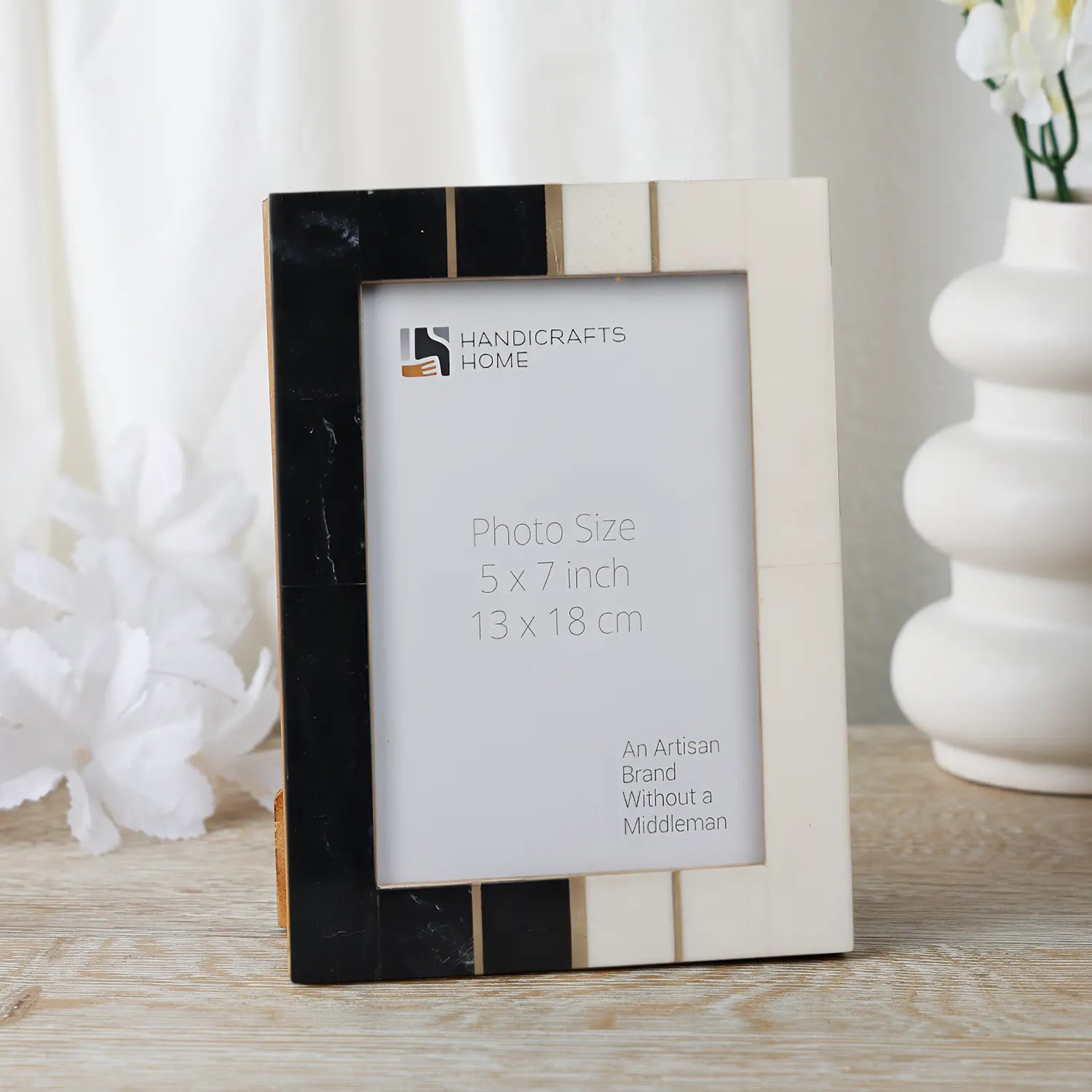 Picture Frames West Coast Ventura Collection Resin Inlay Brass Black White 4x6 5x7"