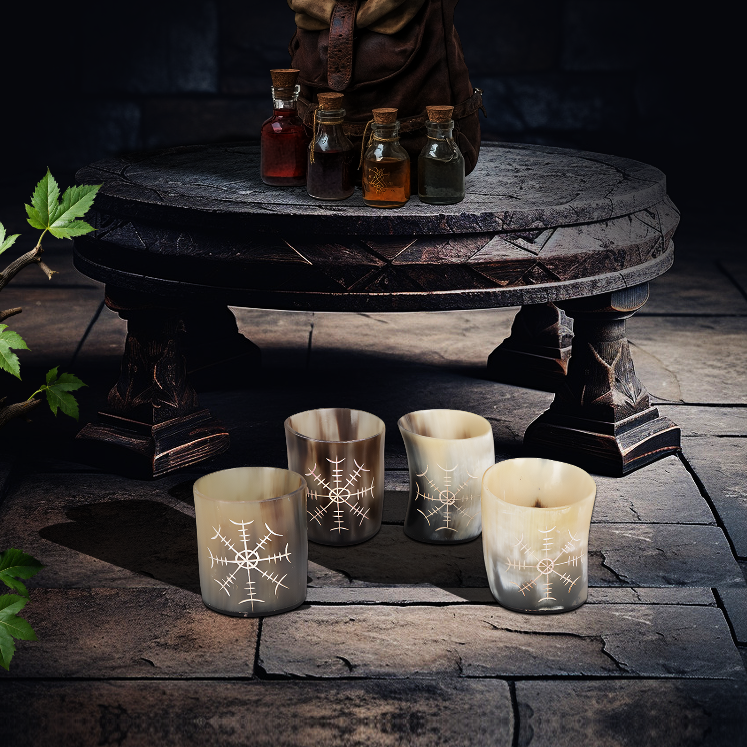 Introducing Our Nordic Compass Collection – Handmade Real Horn Shot Glasses in Nordic Compass Patterns!