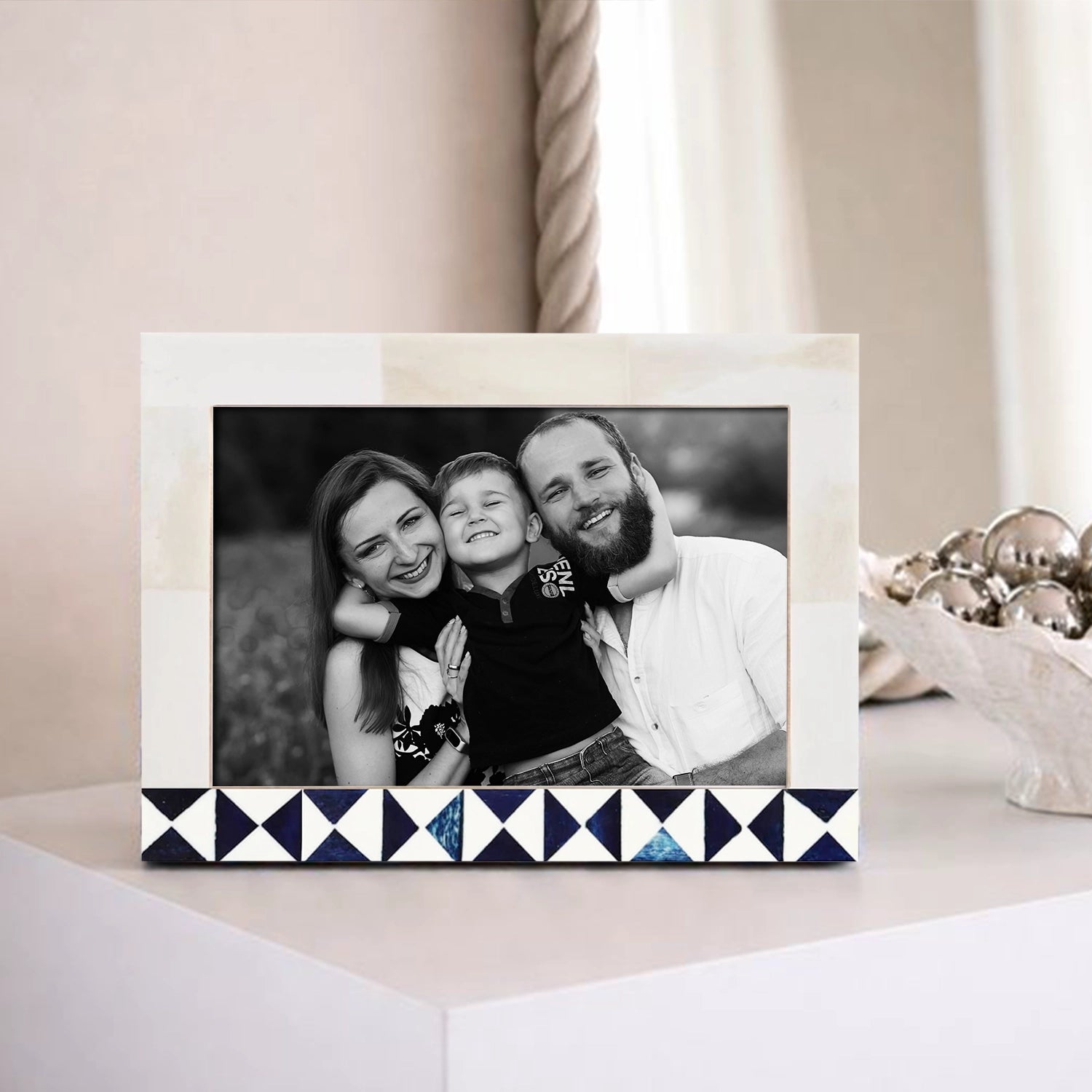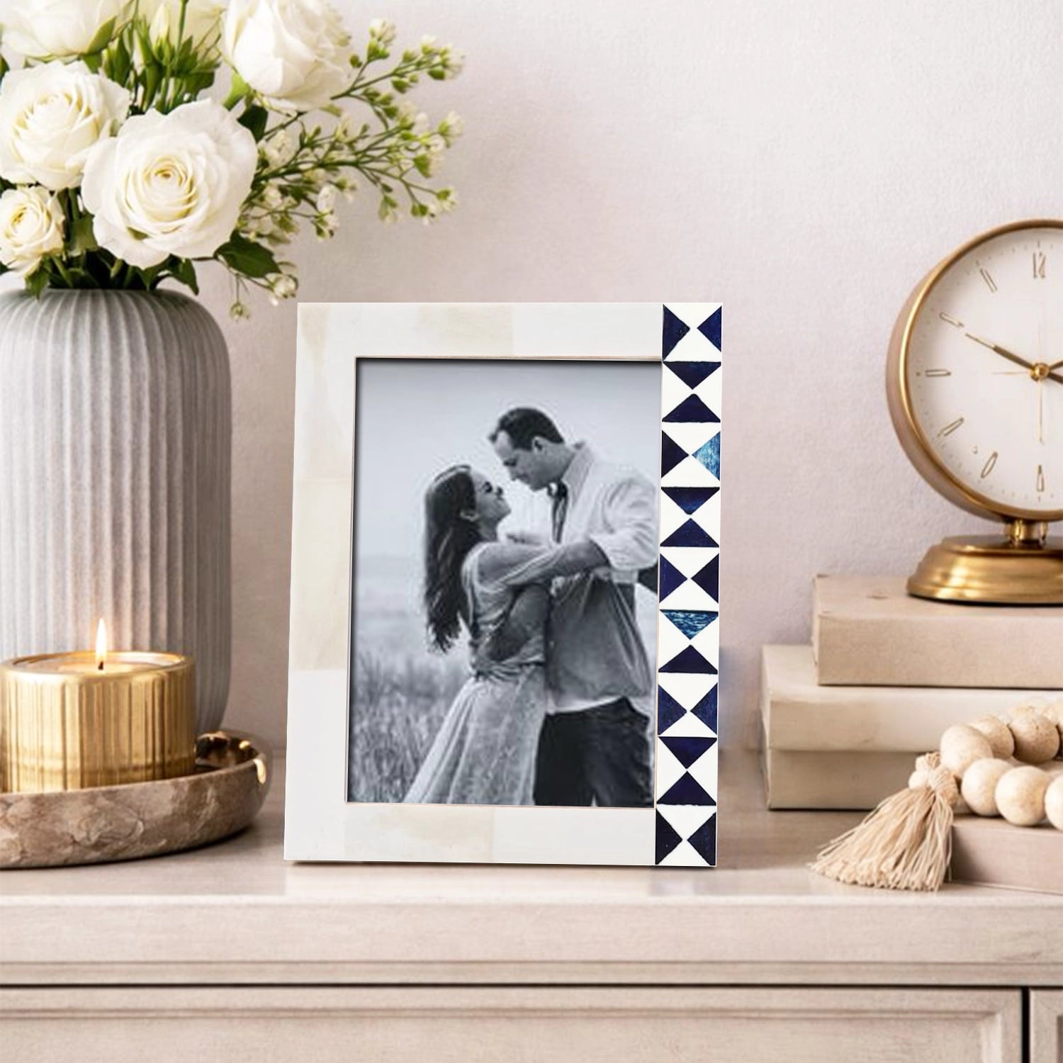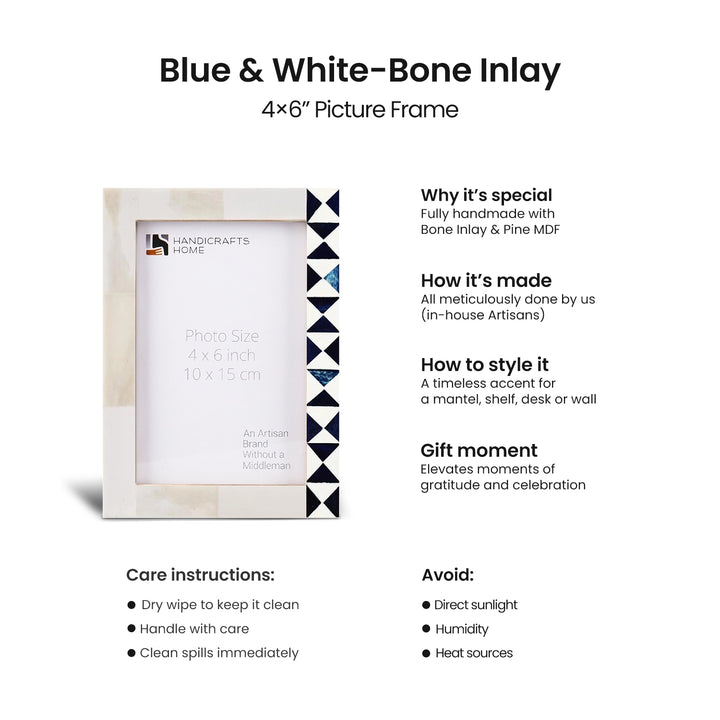 Picture Frame Indigo Mosaic Collection Bone Inlay White & Blue – 4x6 & 5x7"