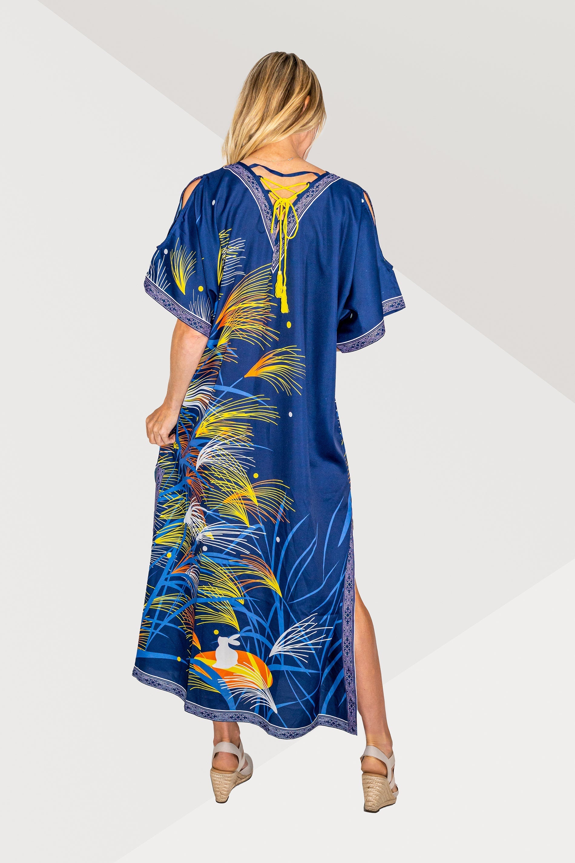 Women Long Kaftans Summer Holiday Caftan Dress Blue Vacation S-3XL