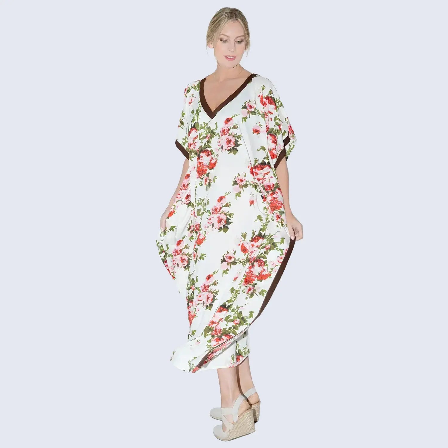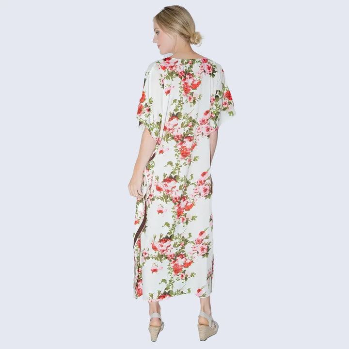 Women Long Kaftans Summer Holiday Caftan Dress Cream S-3XL