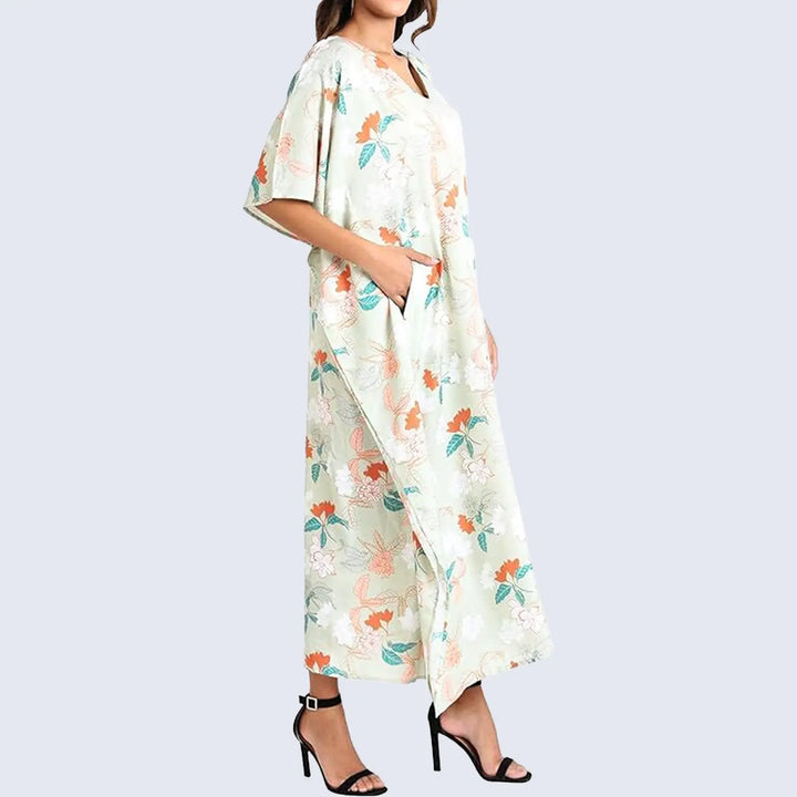 Women Long Kaftans Summer Holiday Caftan Dress Green S-3XL