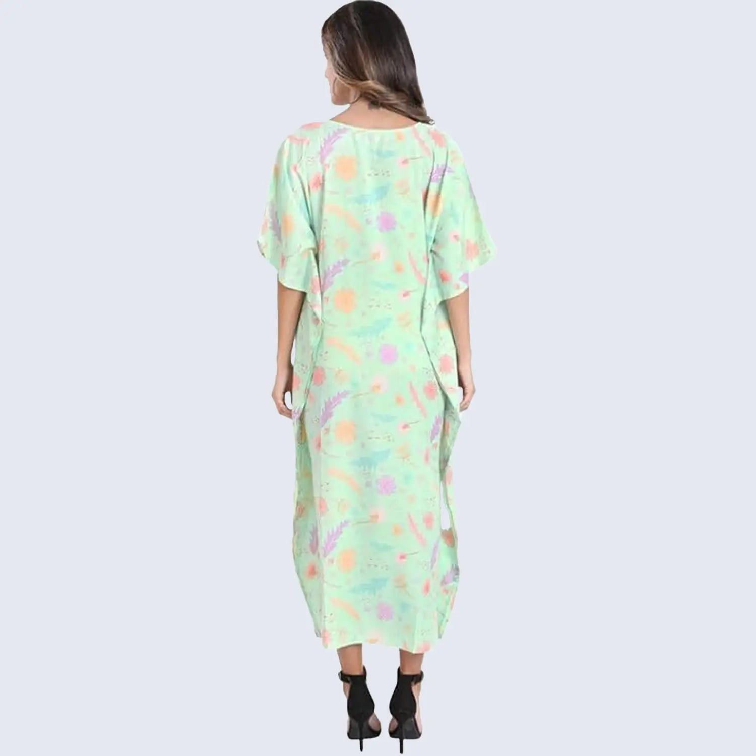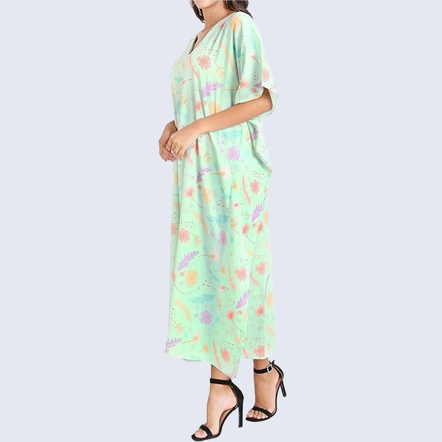 Women Long Kaftans Summer Holiday Caftan Dress Green S-3XL