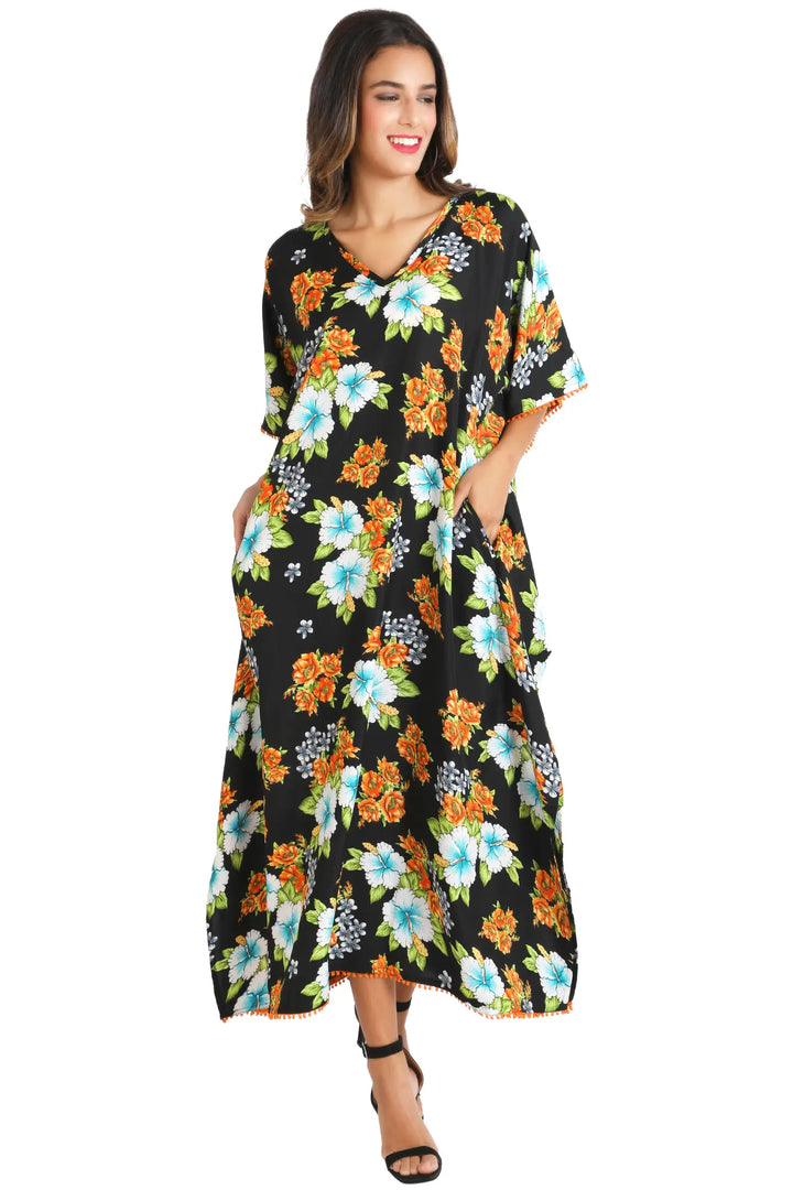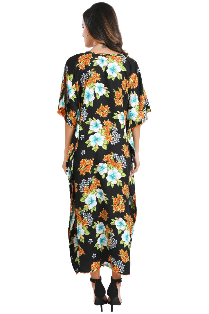 Women Long Kaftans Summer Holiday Caftan Dress Black S-3XL
