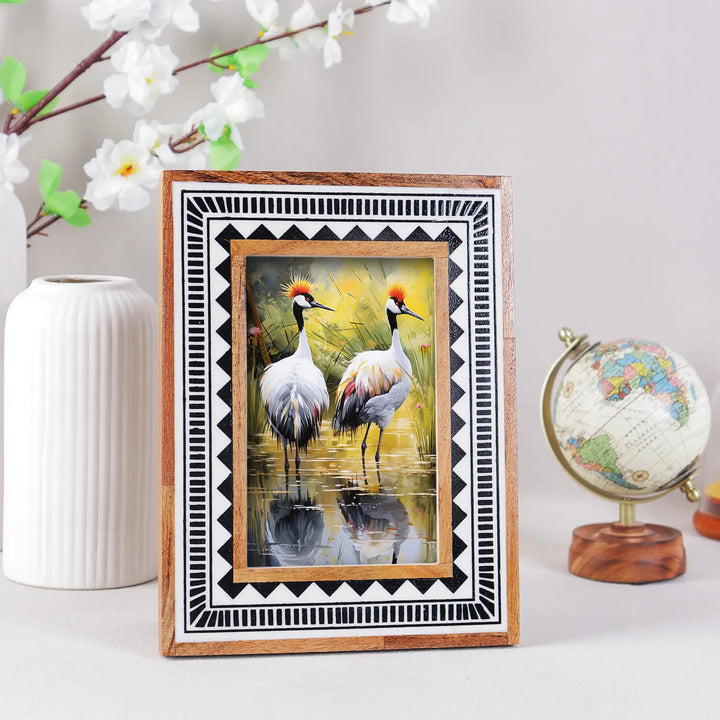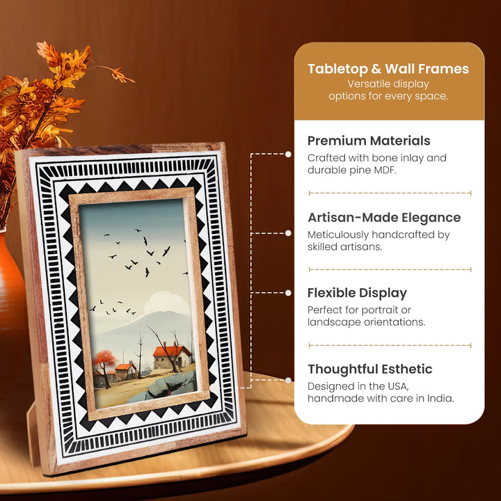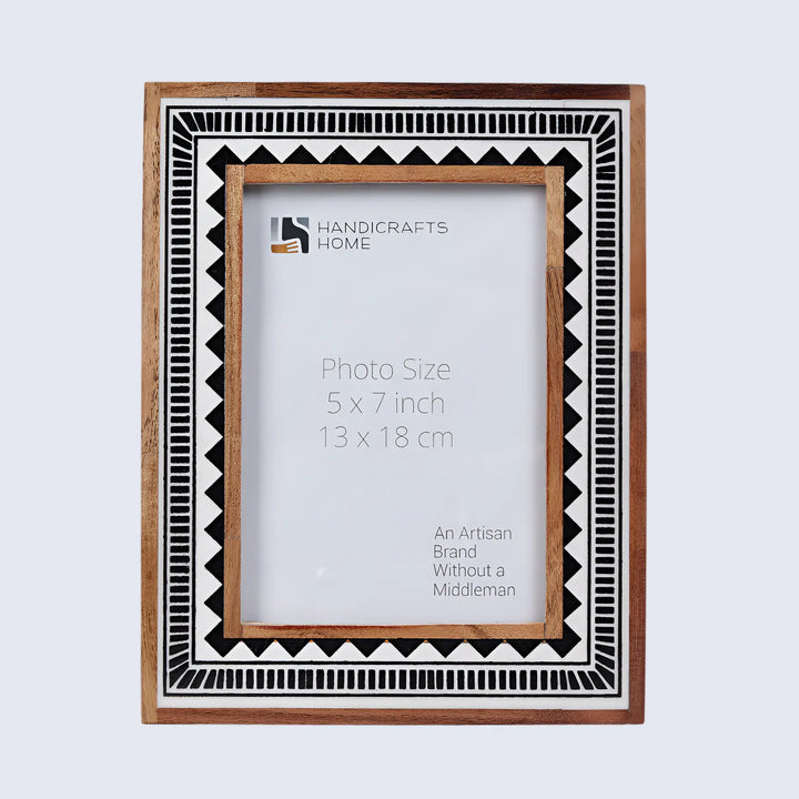 Wood Resin Inlay Handmade Black & White Geometric Picture Frame - 4x6, 5x7