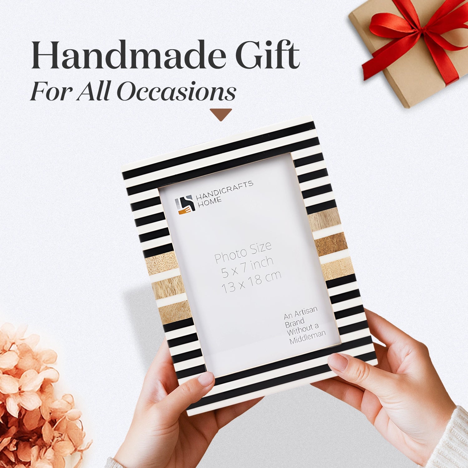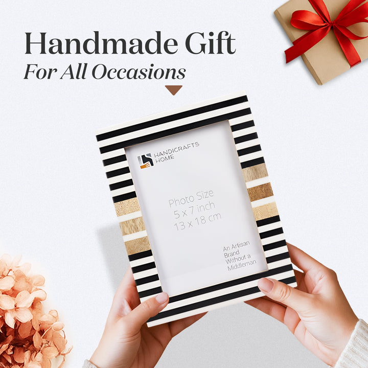 Wood & Resin Inlay Stripewood Picture Frame, Black & White