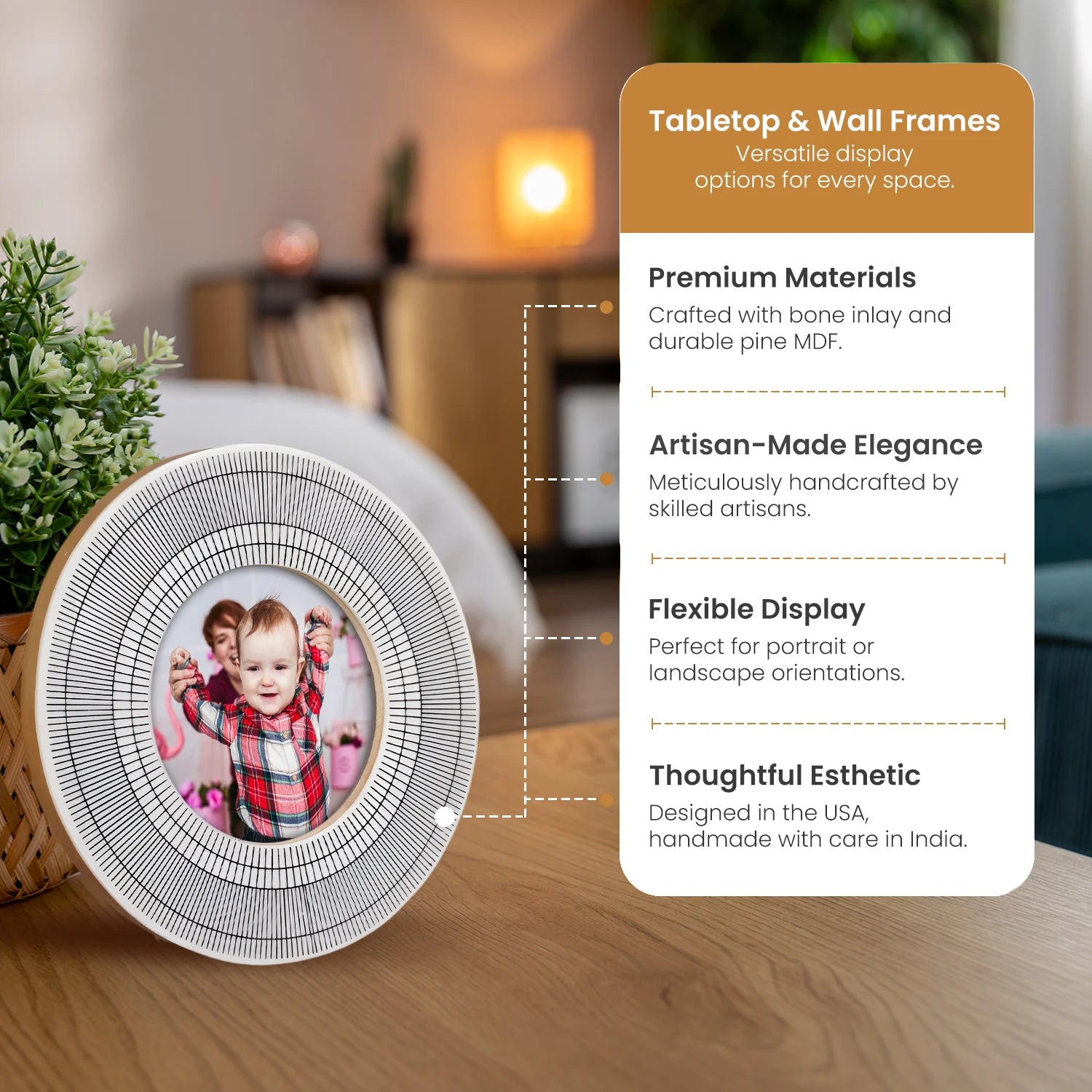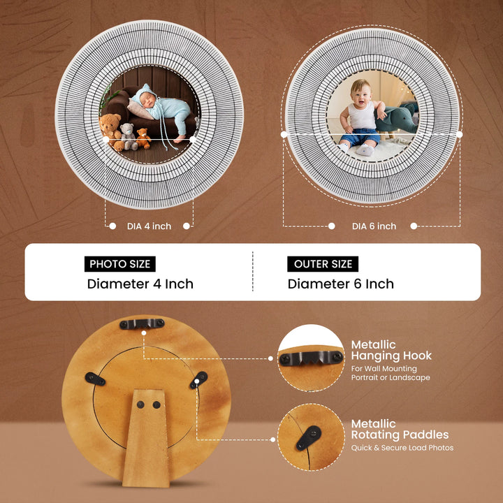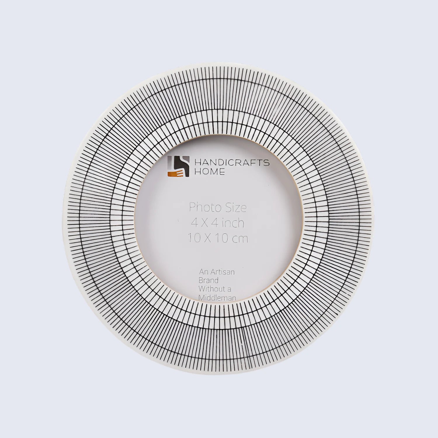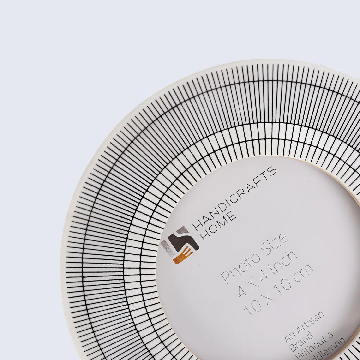 4x4 Round Black & White Baby Picture Frame Linear Sunburst Pattern