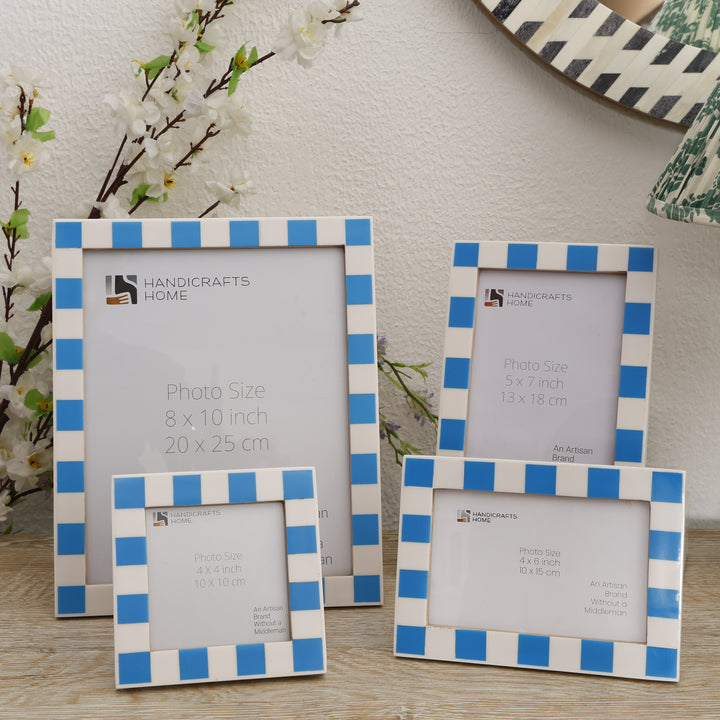 Azur White Checkered Resin Inlay Frame Set 4 Mixed Sizes