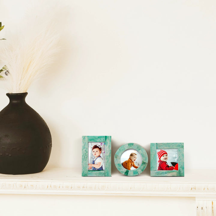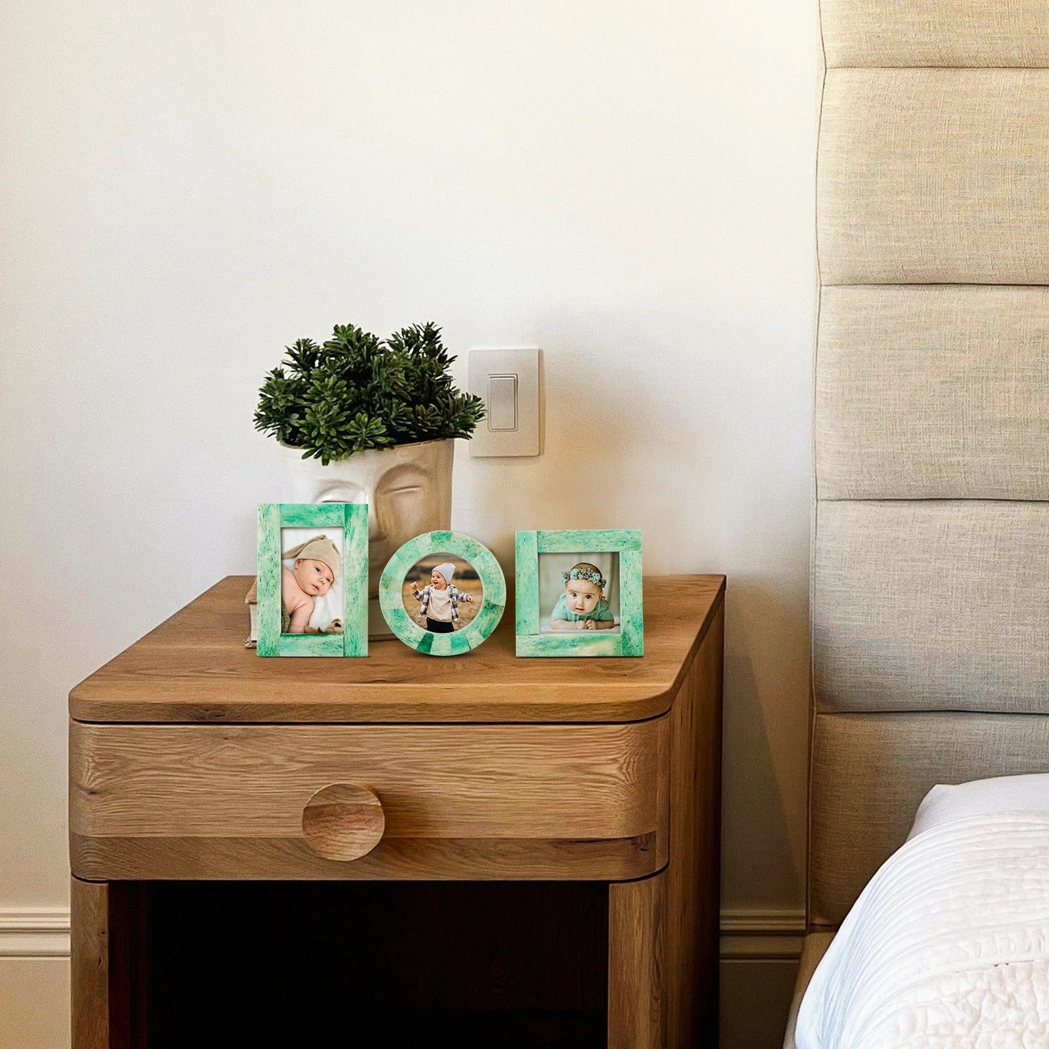 Baby Picture Frames Classic Bone Inlay in Green, Set of 3