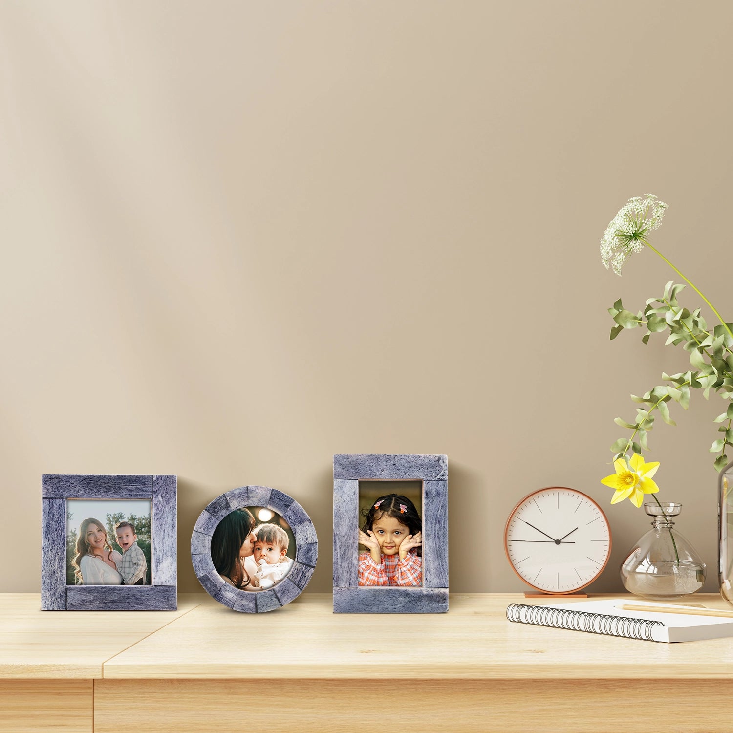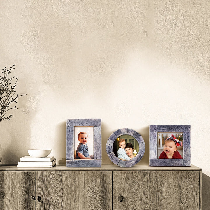 Baby Picture Frames Classic Bone Inlay in Grey, Set of 3