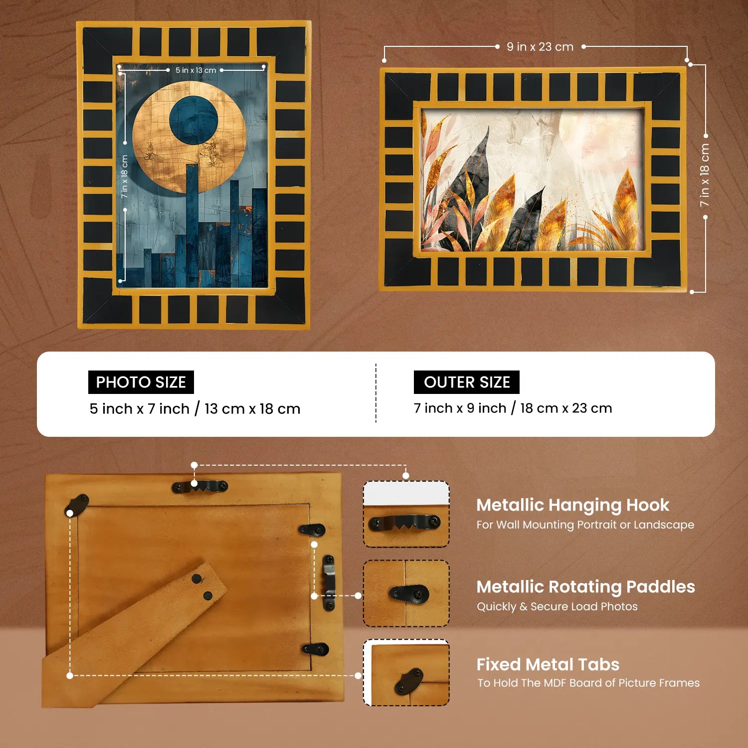 Picture Frames Square Pattern Collection Resin Inlay, Black- 4x6, 5x7"