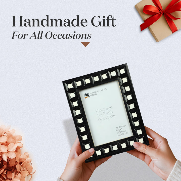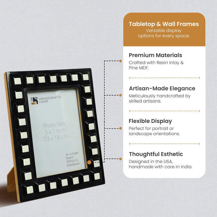 Black & White Square Resin Inlay Photo Frame - 5x7