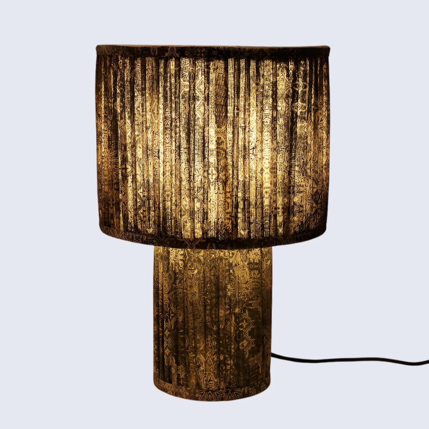 Brown Pleated Fabric Table Lamp - Cotton Lampshades in 15"