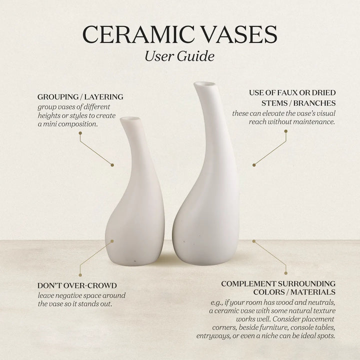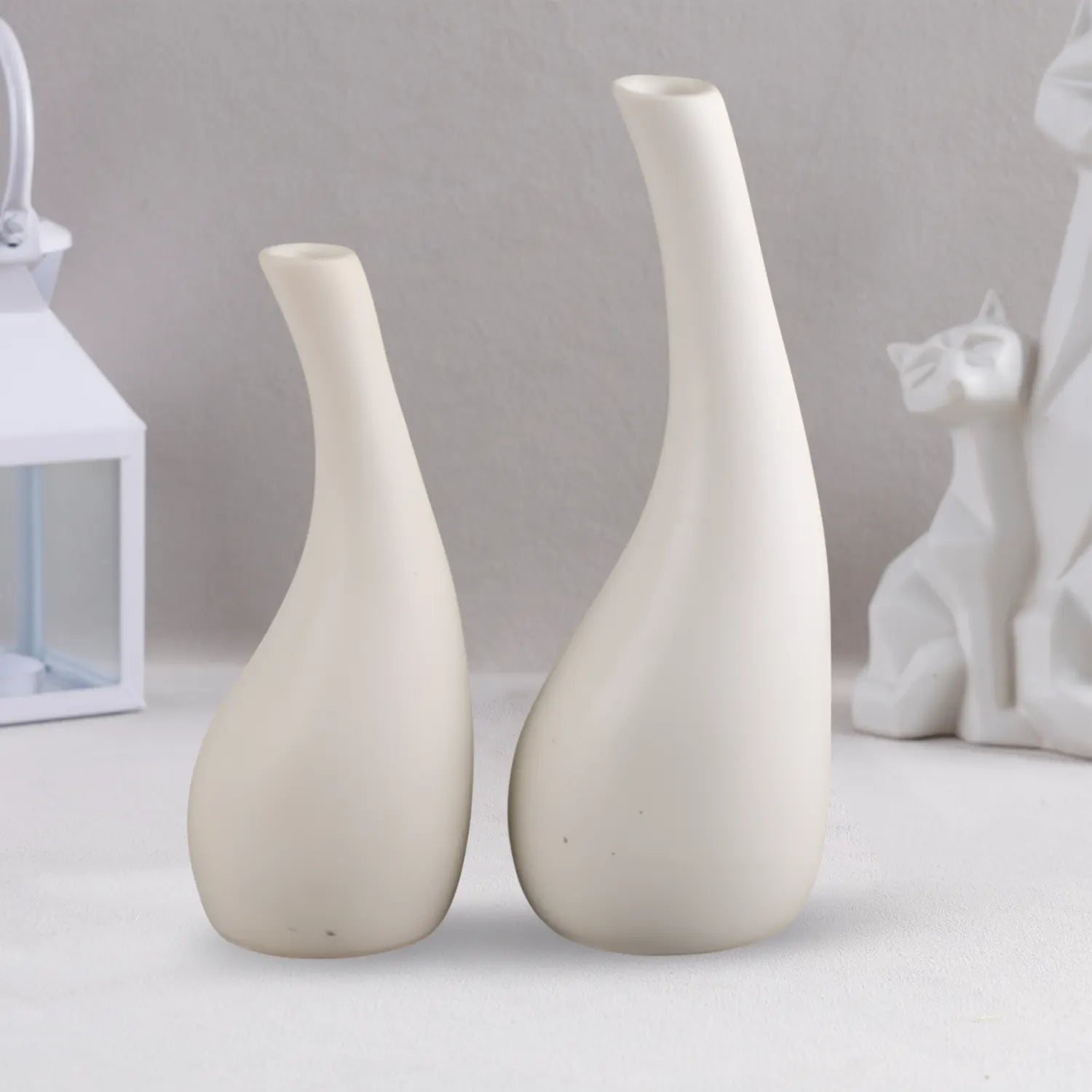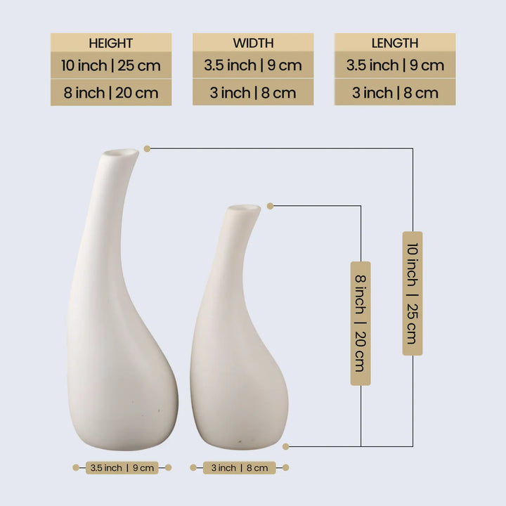 Ceramic Vase Tear Drop Handmade White Flower Vases Set Of 2