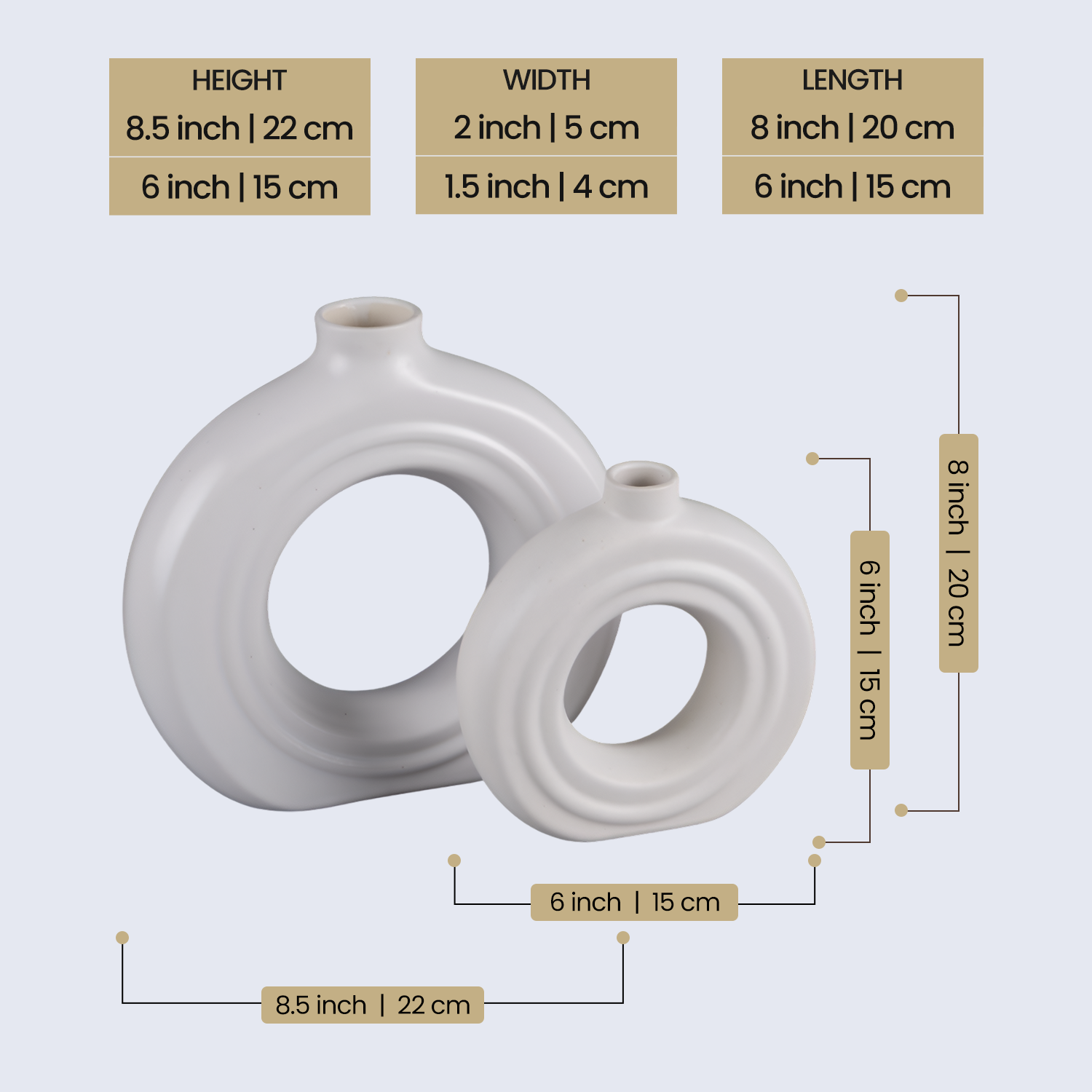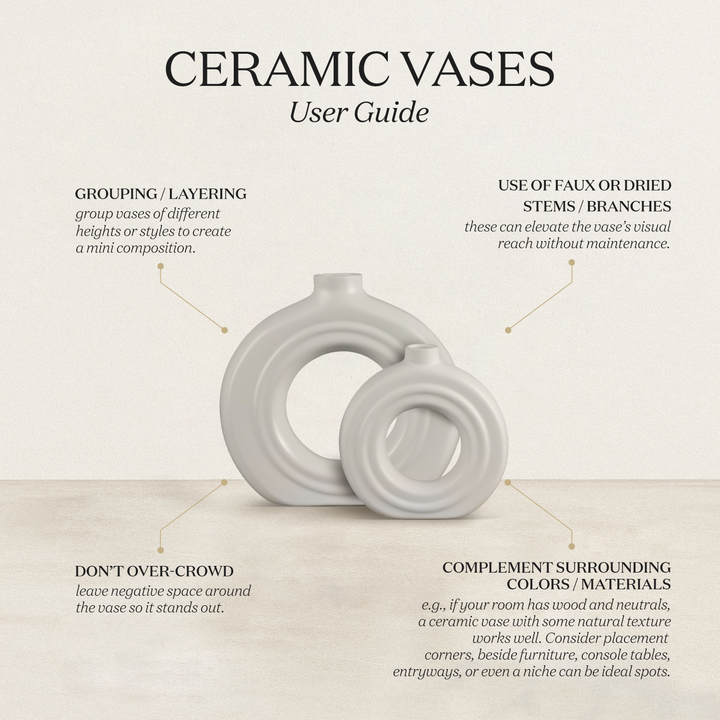 Ceramic Vase Donut Glossy Handmade White Glossy Flower Vases Set Of 2