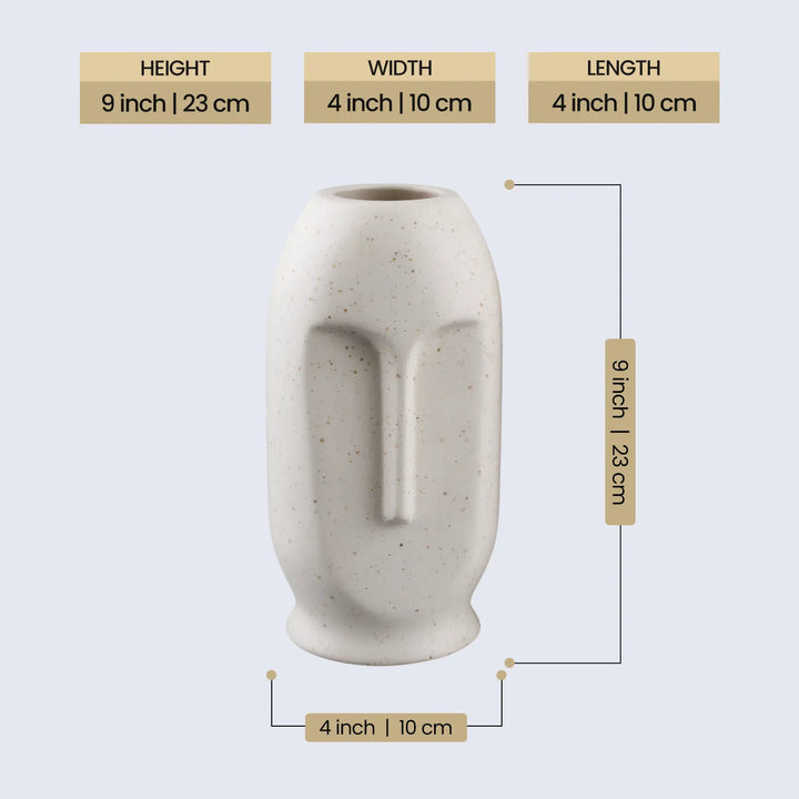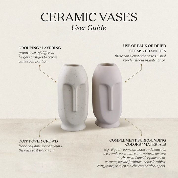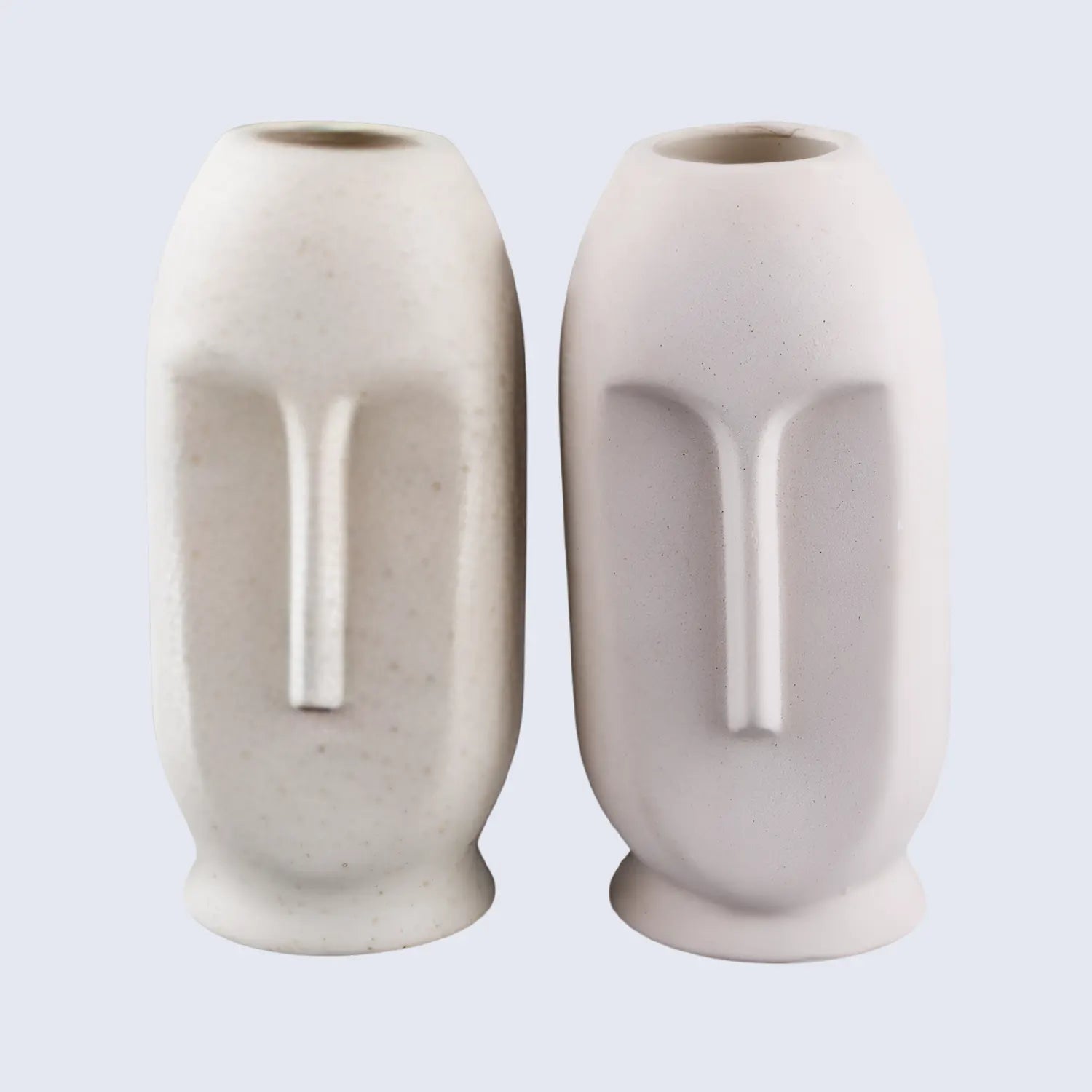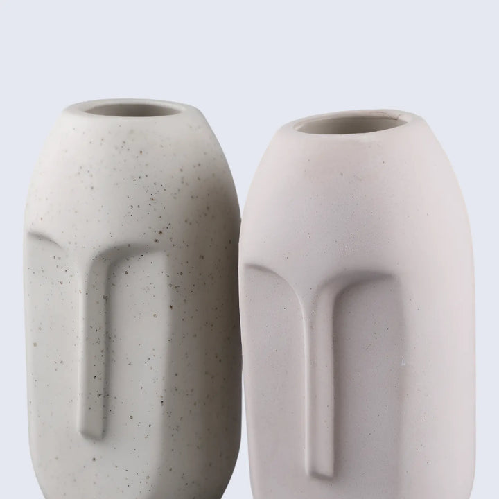 Ceramic Vase Oval Duo Face Pattern In Cream White Matte Set Of 2
