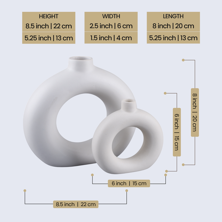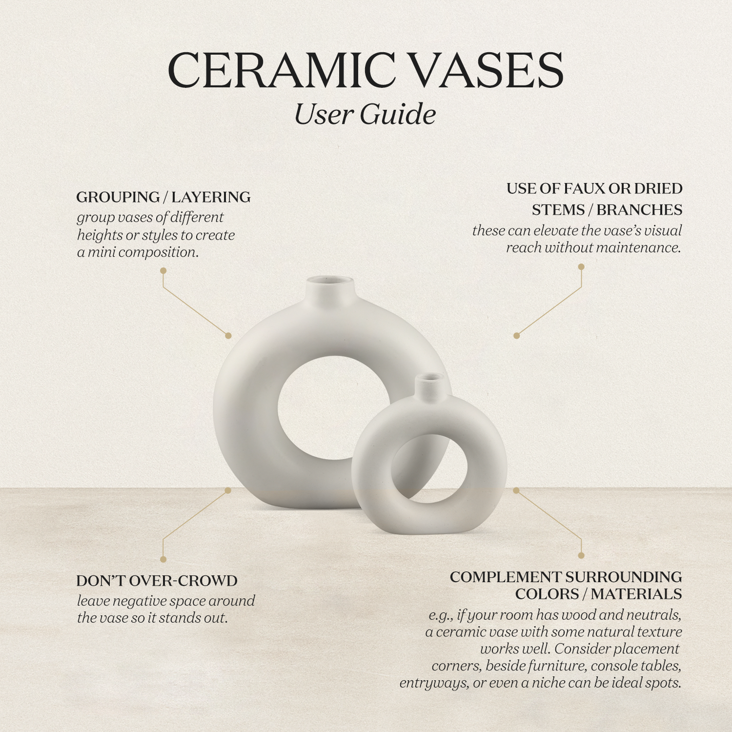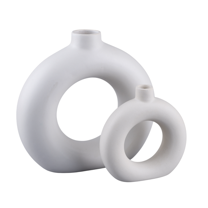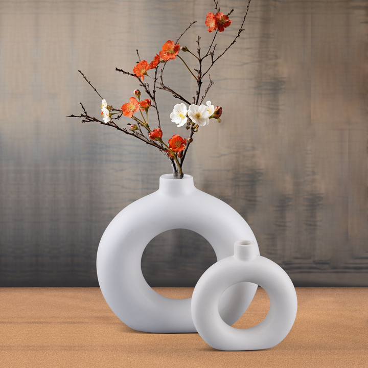 Ceramic Vase Matte Decorative Vases For Flowers White & Black Set Of 2