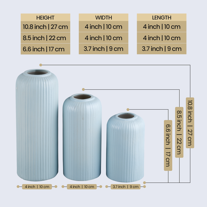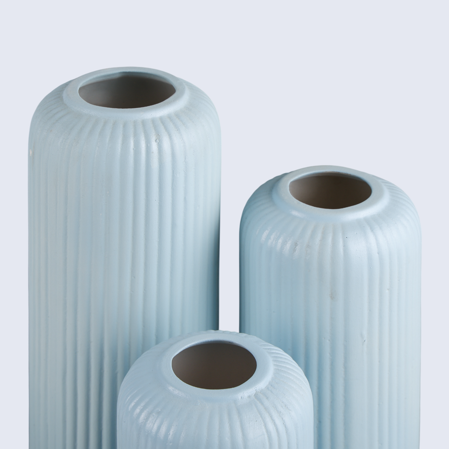 Ceramic Vase Turquoise Stripped Pattern Decorative Flower Vases Set Of 3