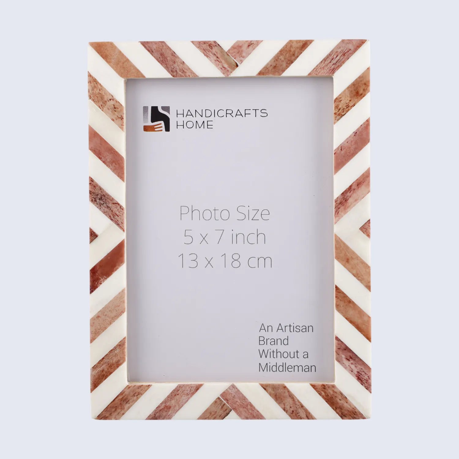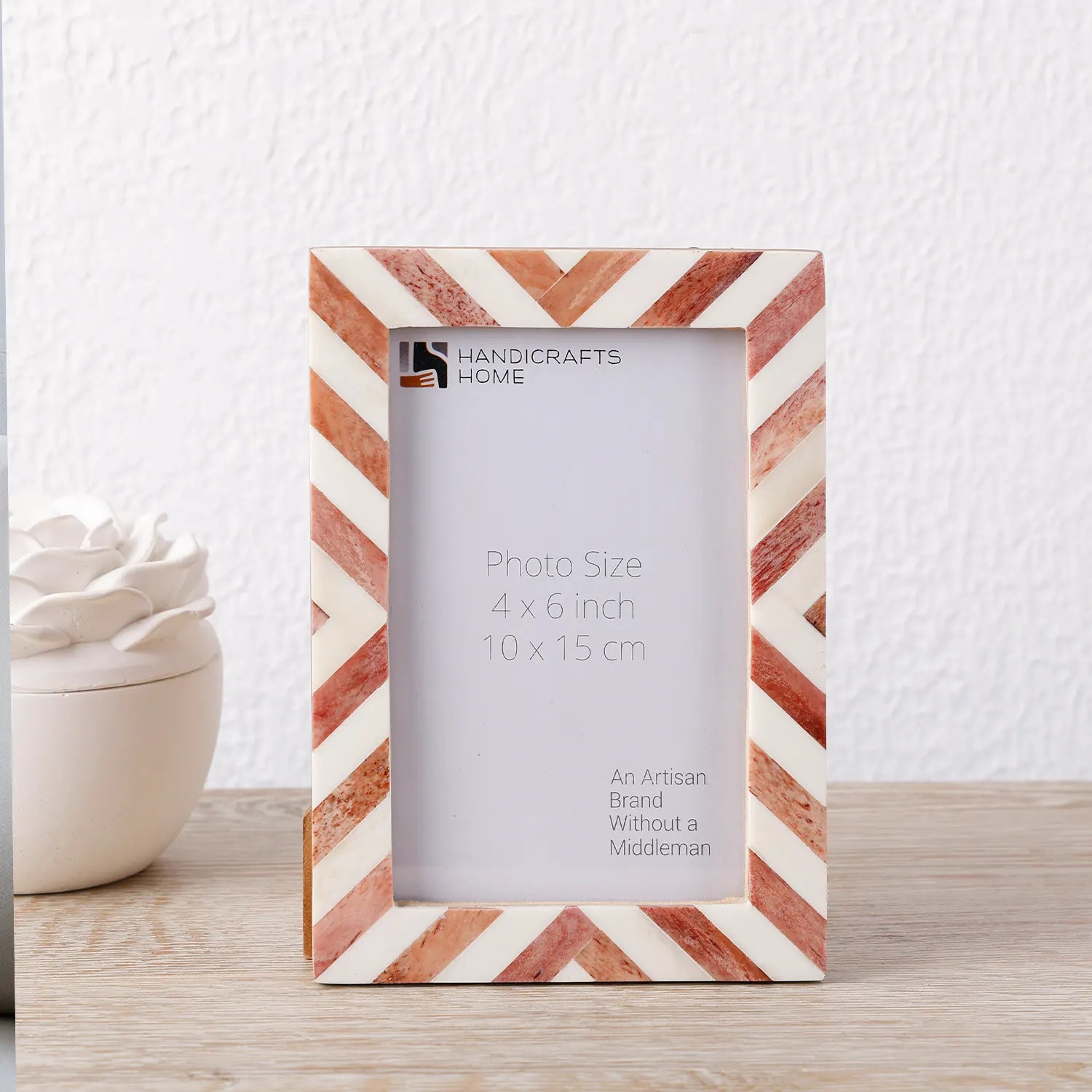The Chevron Collection showcases handcrafted bone inlay frames designed to bring timeless artistry and modern elegance into your home. Each piece reflects authentic craftsmanship, vibrant color, and a bold chevron pattern that makes every frame uniquely beautiful.