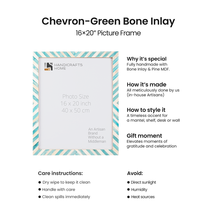 Picture Frames Chevron Pattern Bone Inlay Collection in 29 Sizes, Green