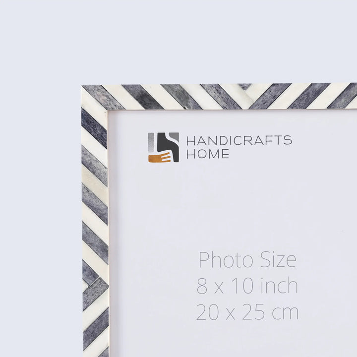 Picture Frames Chevron Pattern Bone Inlay Collection in 3 Sizes, Grey