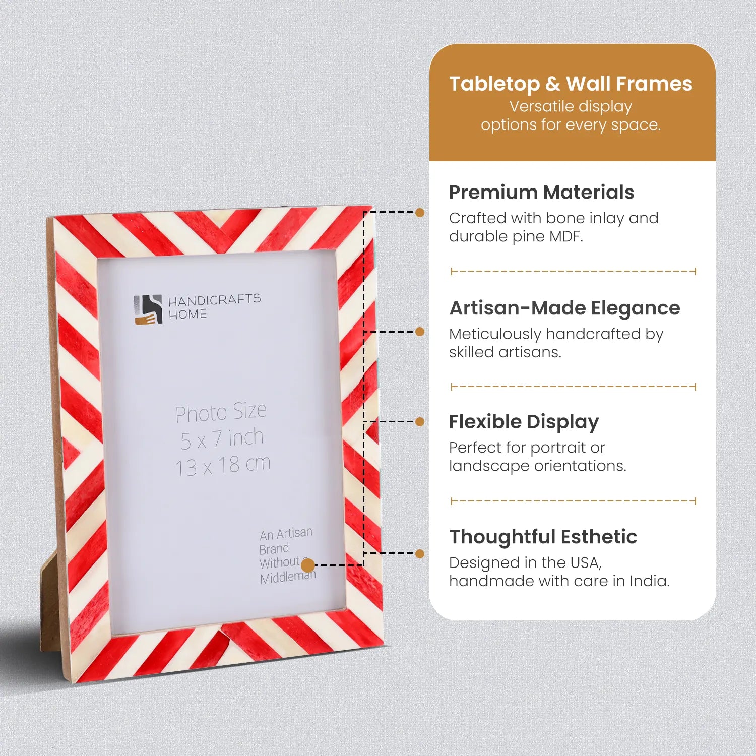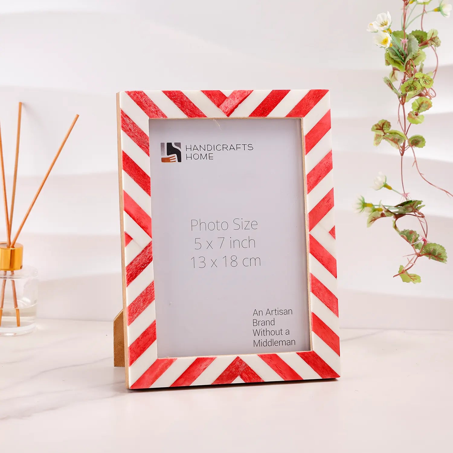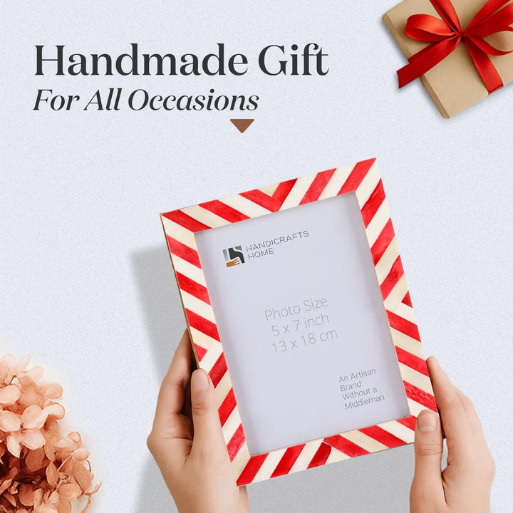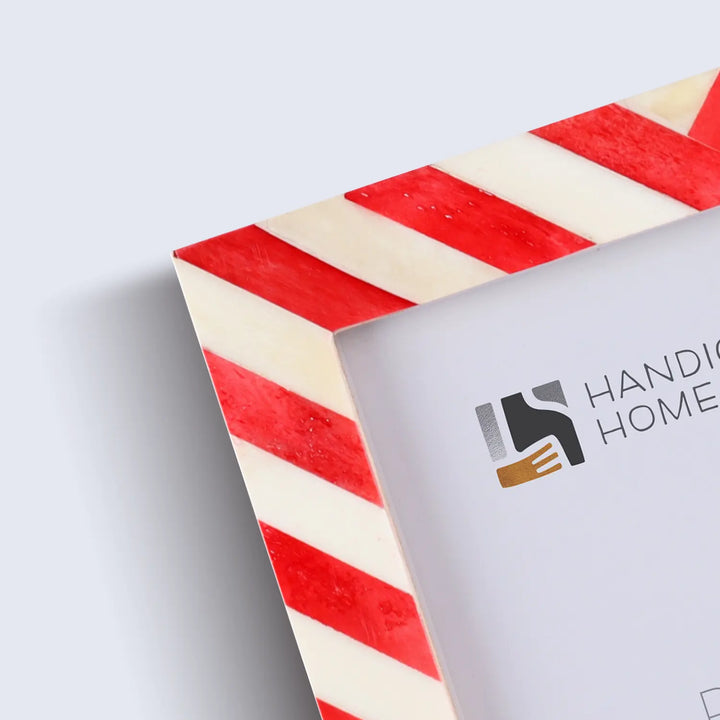 Picture Frames Chevron Pattern Bone Inlay Collection in 4 Sizes, Red