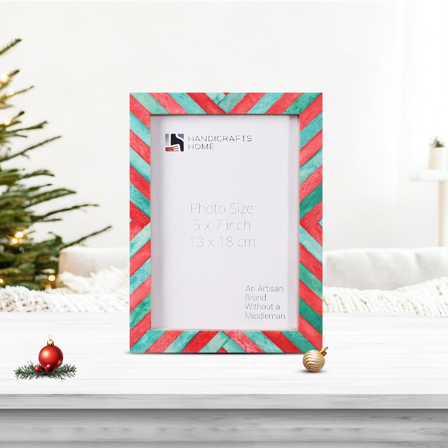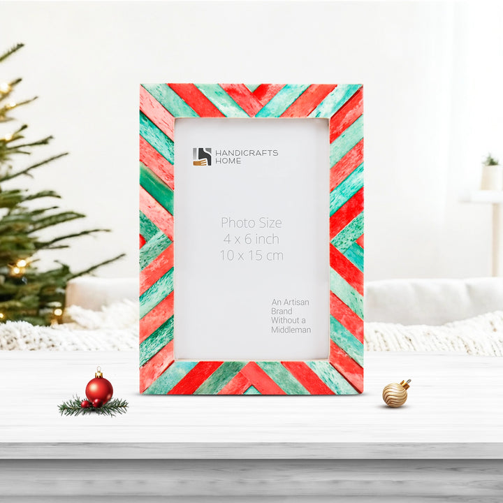 Picture Frames Chevron Pattern Bone Inlay Collection in 4 Sizes, Green & Red