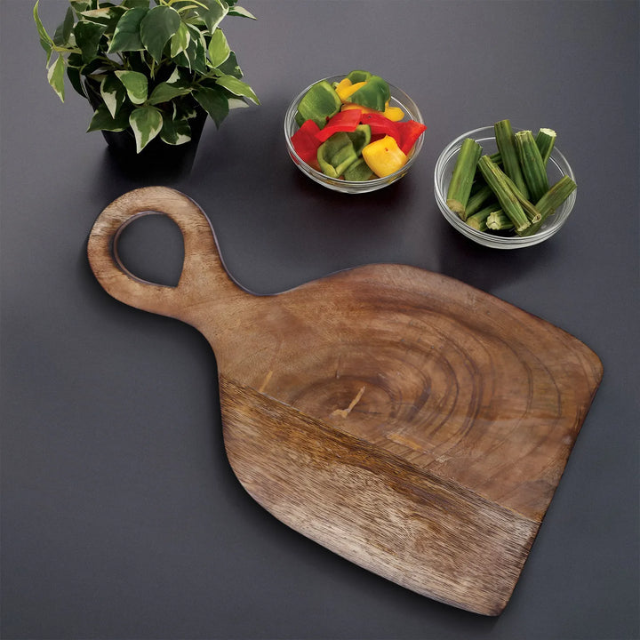 Made from ethically sourced hardwood, this 0.5-inch-thick board offers a smooth, durable, and knife-friendly surface ideal for everything from slicing to serving. Its rustic finish and visible wood grain make each piece uniquely beautiful—perfect for farmhouse and modern rustic kitchens.