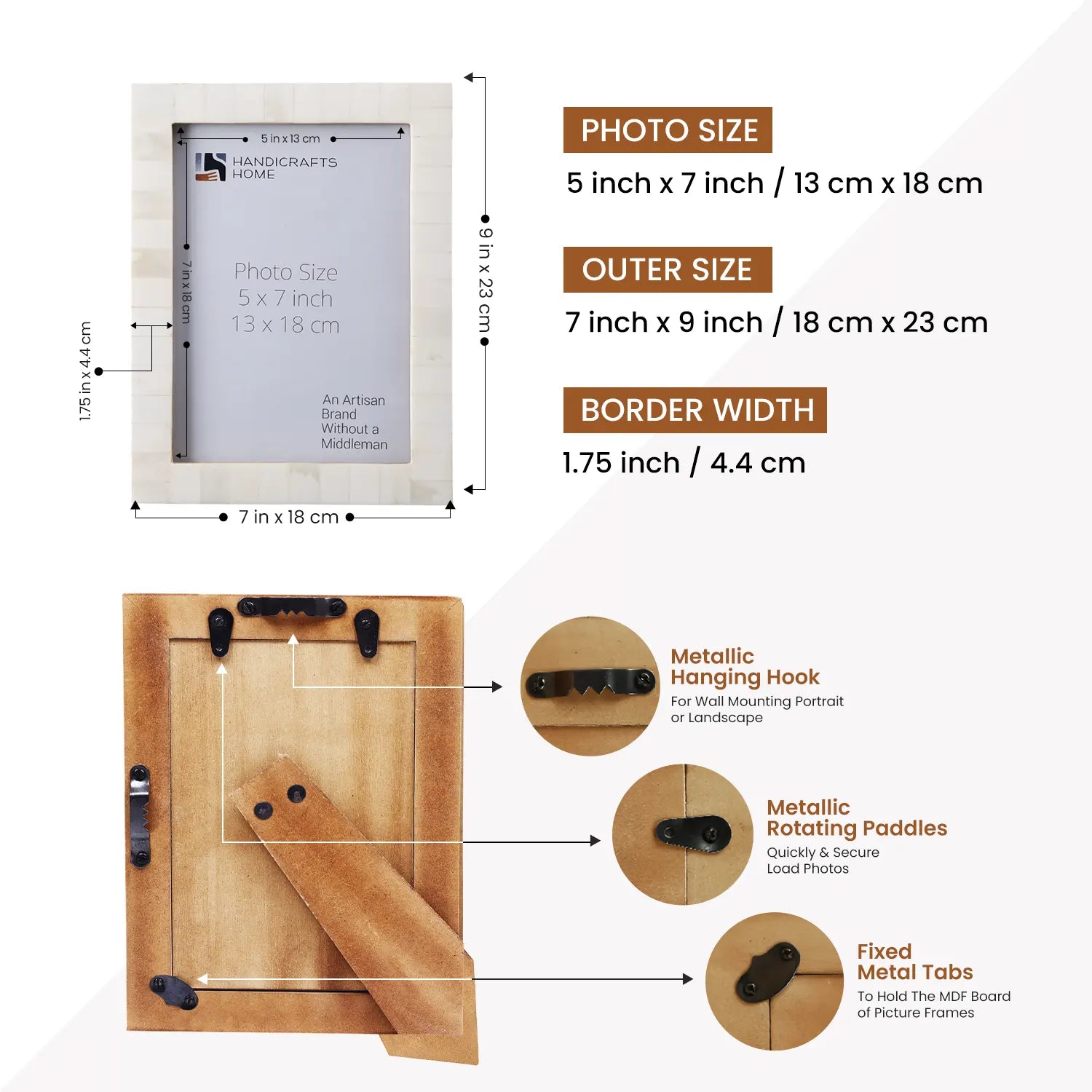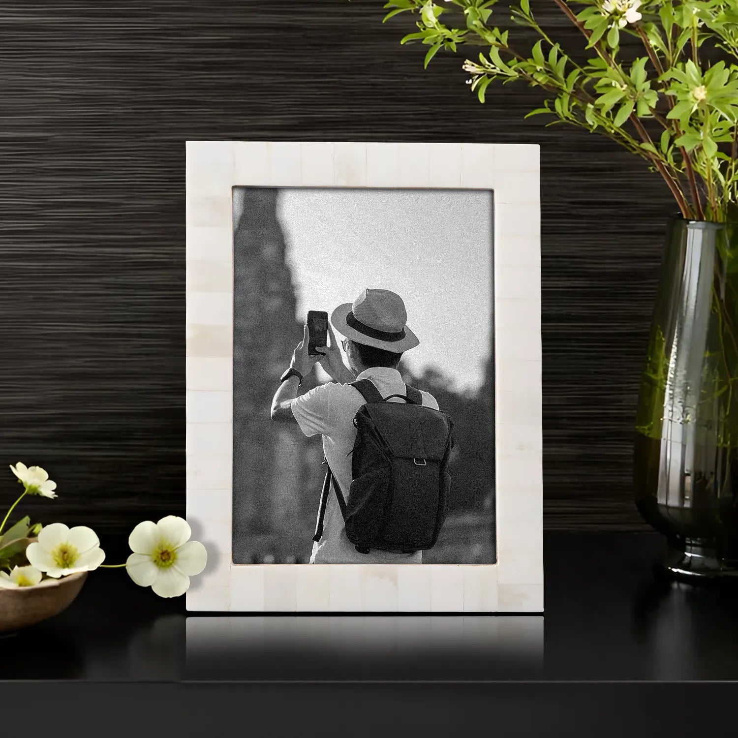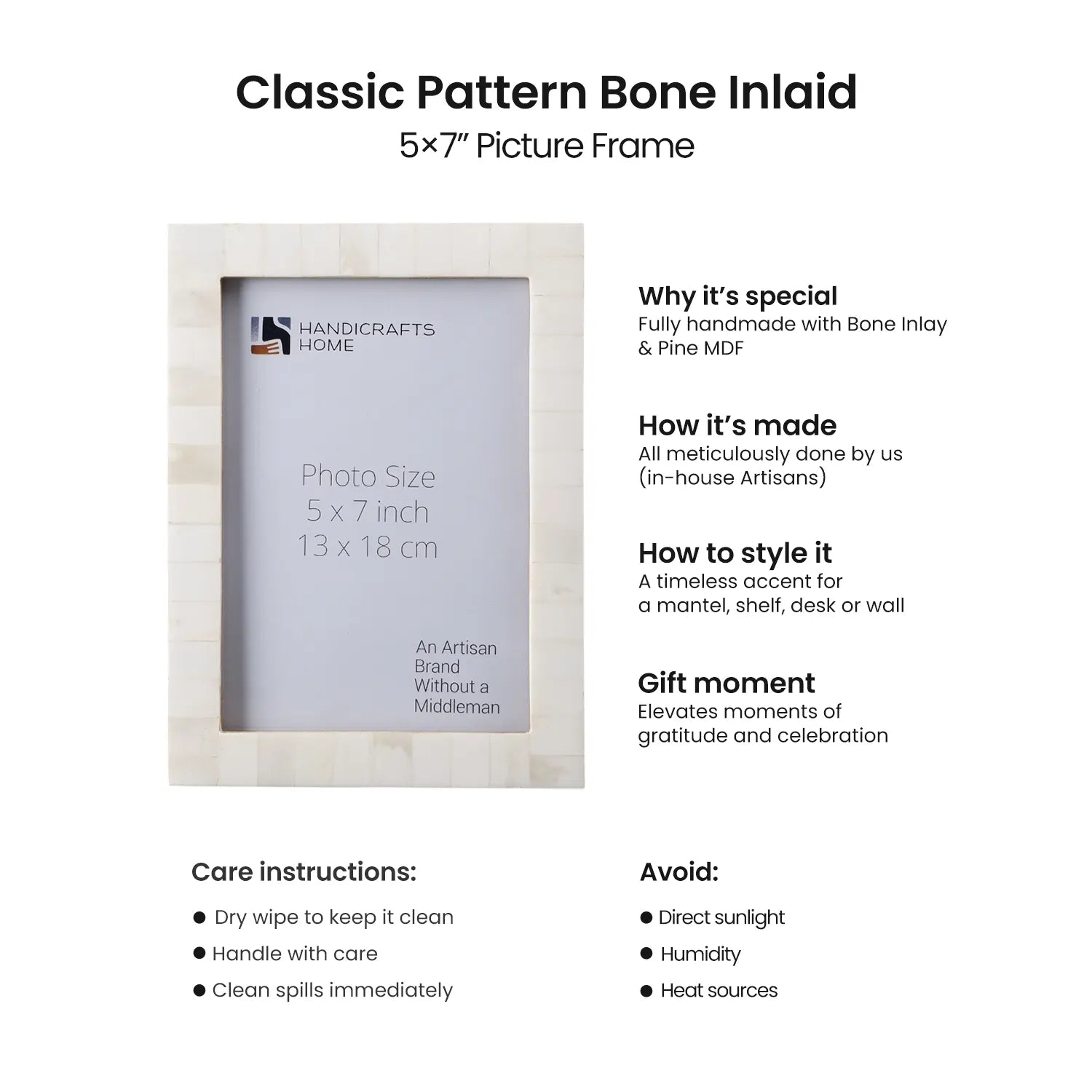 Picture Frames Classic Pattern Bone Inlay Collection in 3 Sizes, White