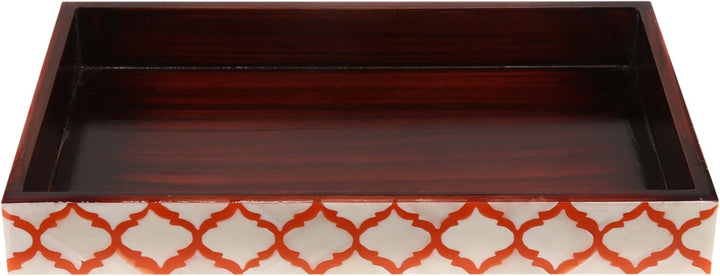 Vanity Trays Moroccan Pattern Bone & Resin inlay, White & Red, 10" x 6"