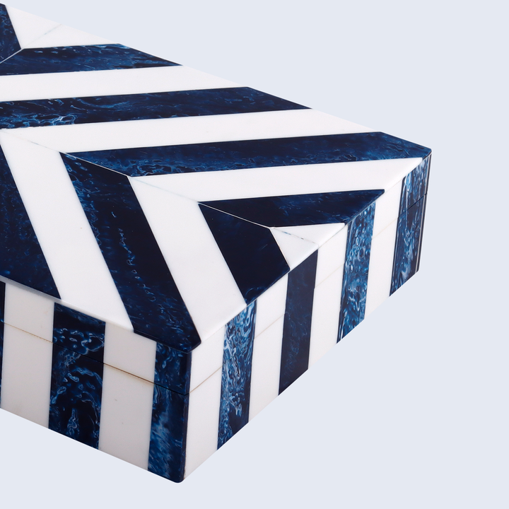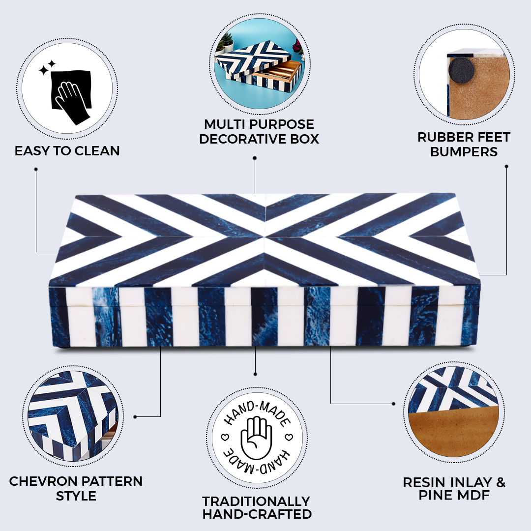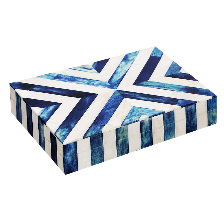 Chevron Pattern Decorative Storage Box, Bone Inlay in 6 Sizes, Blue & White
