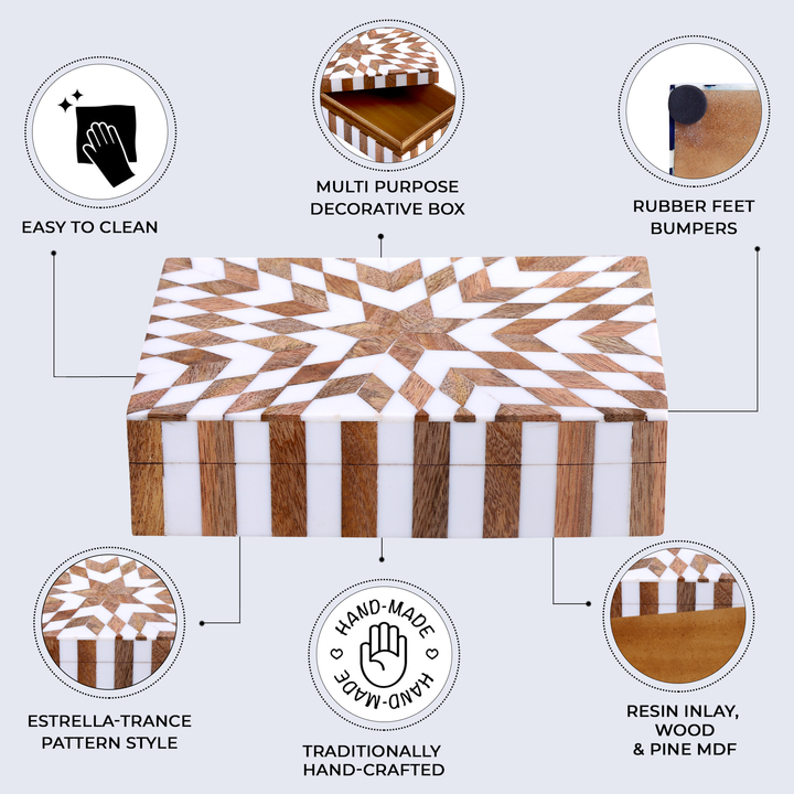 Decorative Storage Box Estrella Trance Resin Inlay in 8 x 5 x 2 inch