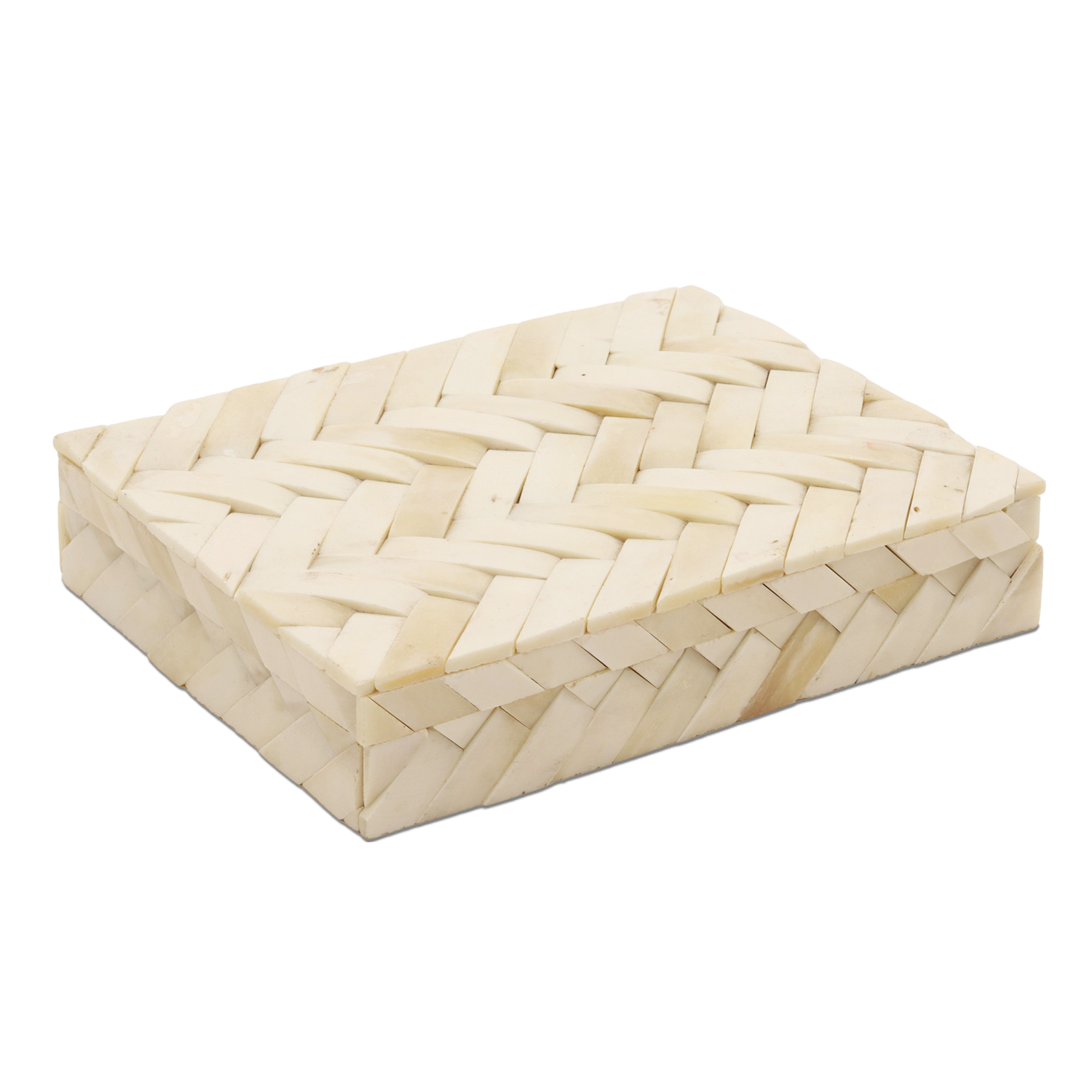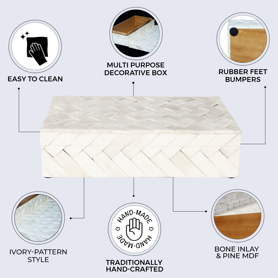 Braid Pattern Decorative Storage Box, Bone Inlay in 7 Sizes, Ivory