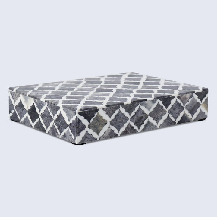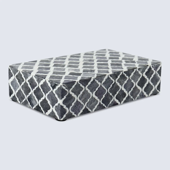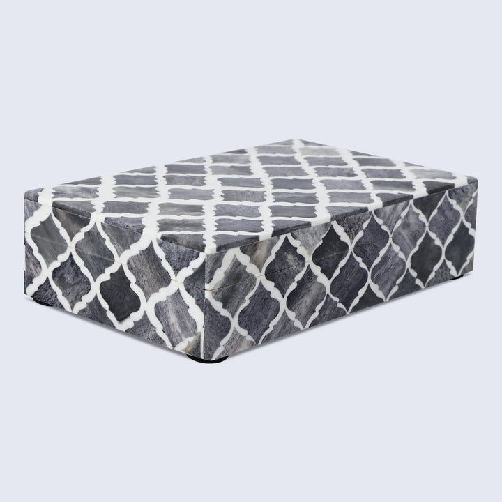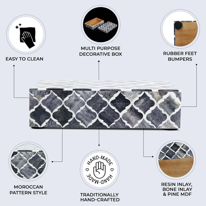 Moroccan Pattern Decorative Storage Box, Bone & Resin Inlay in 7 Sizes, Grey & White