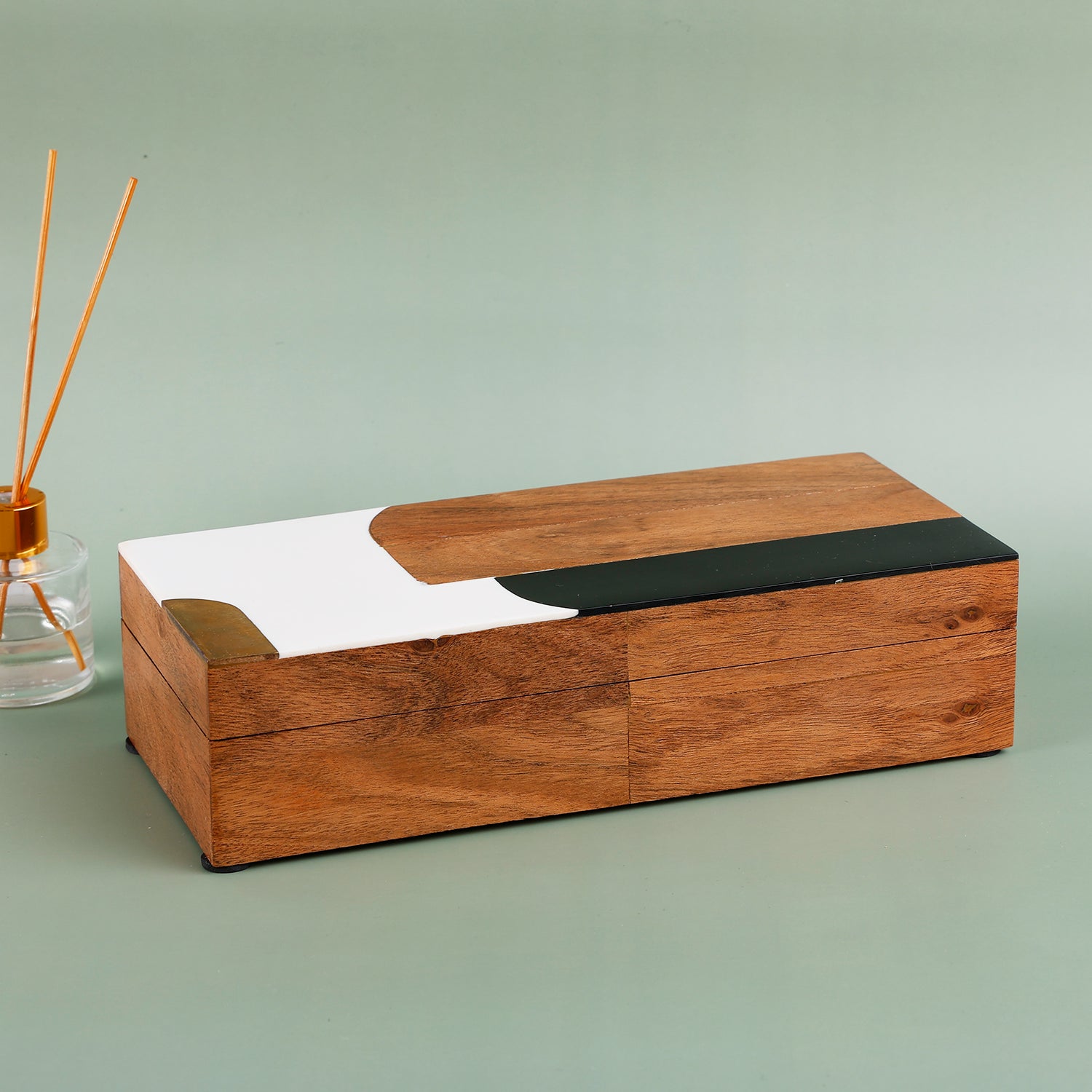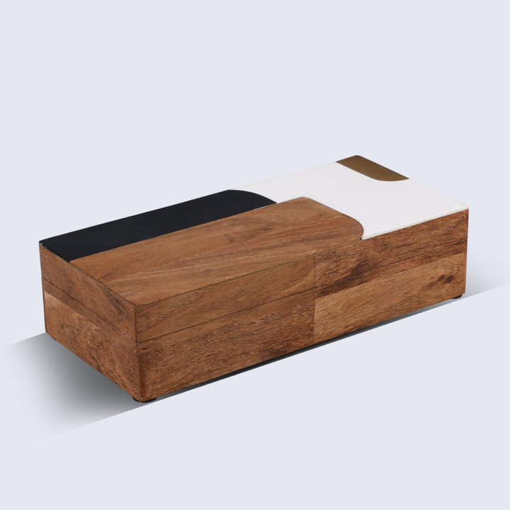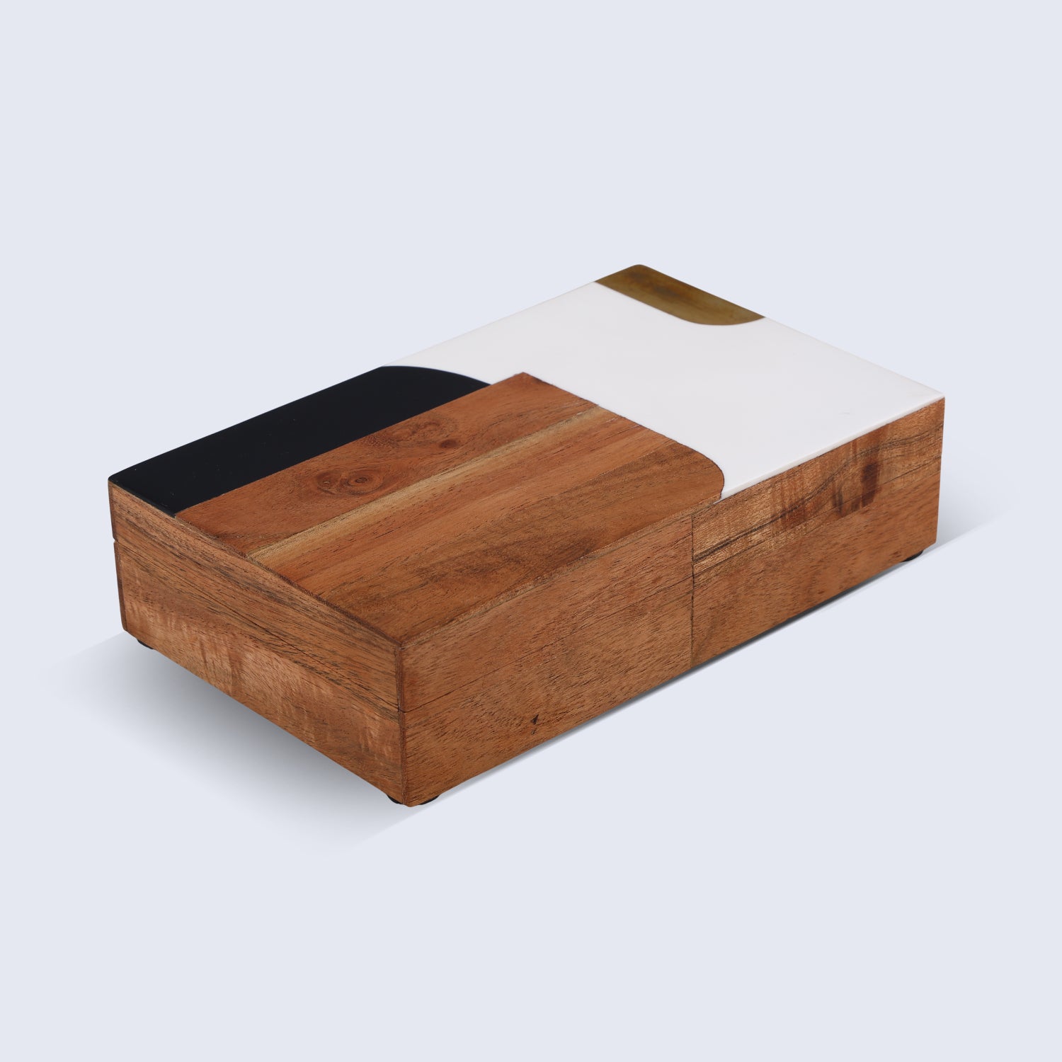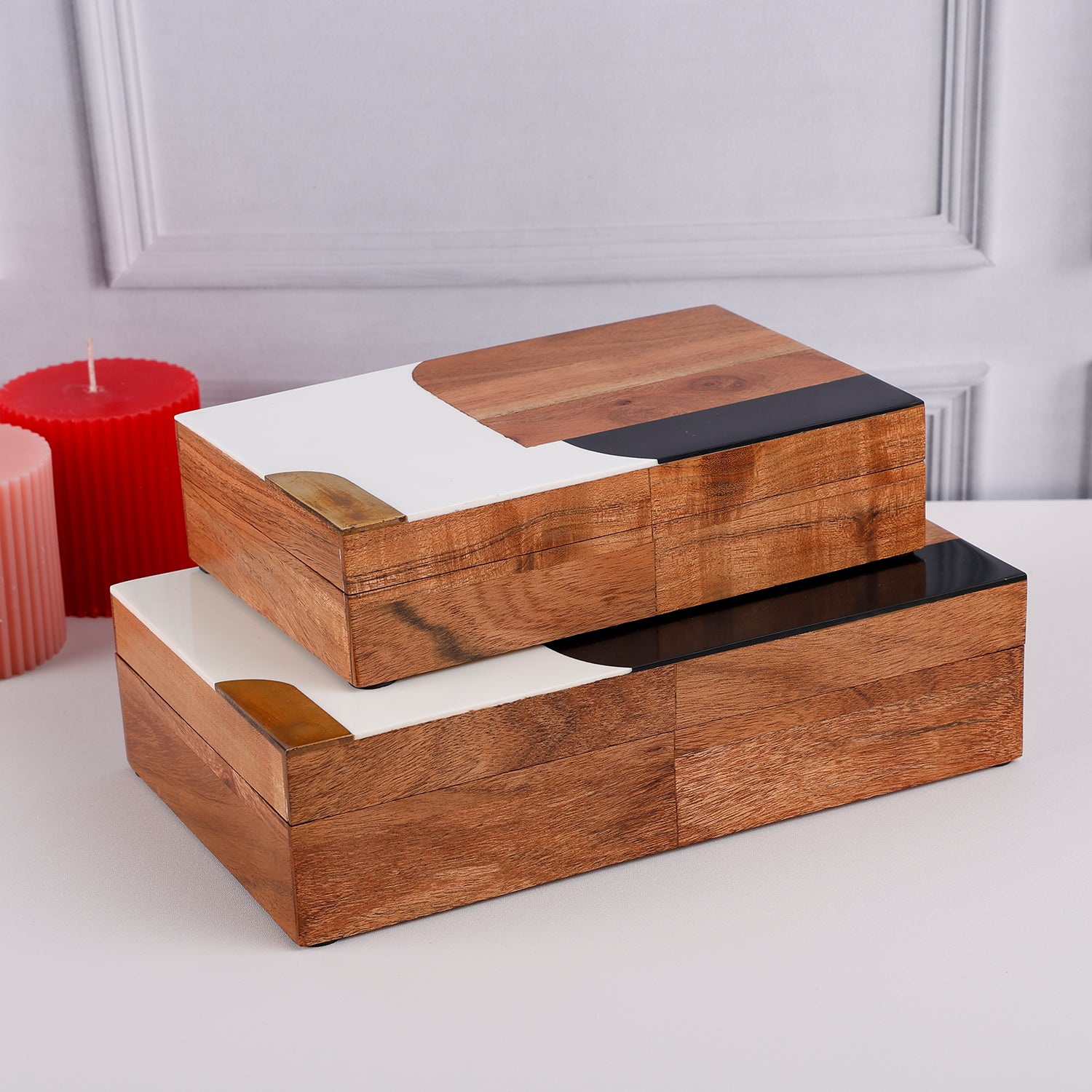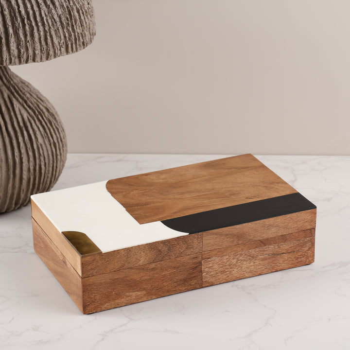 Abstract-Block Pattern Decorative Storage Box, Resin Inlay in 3 Sizes, Black-White